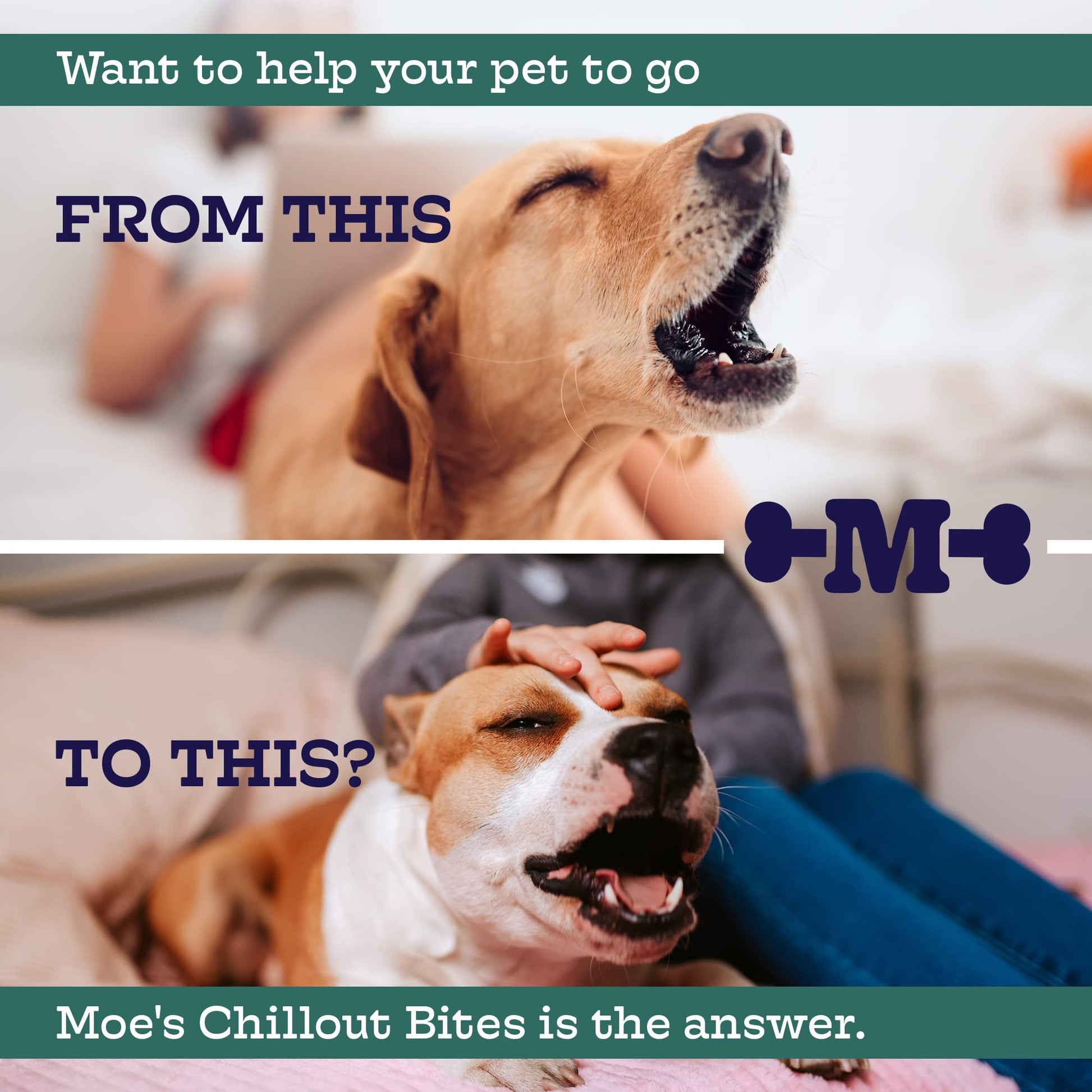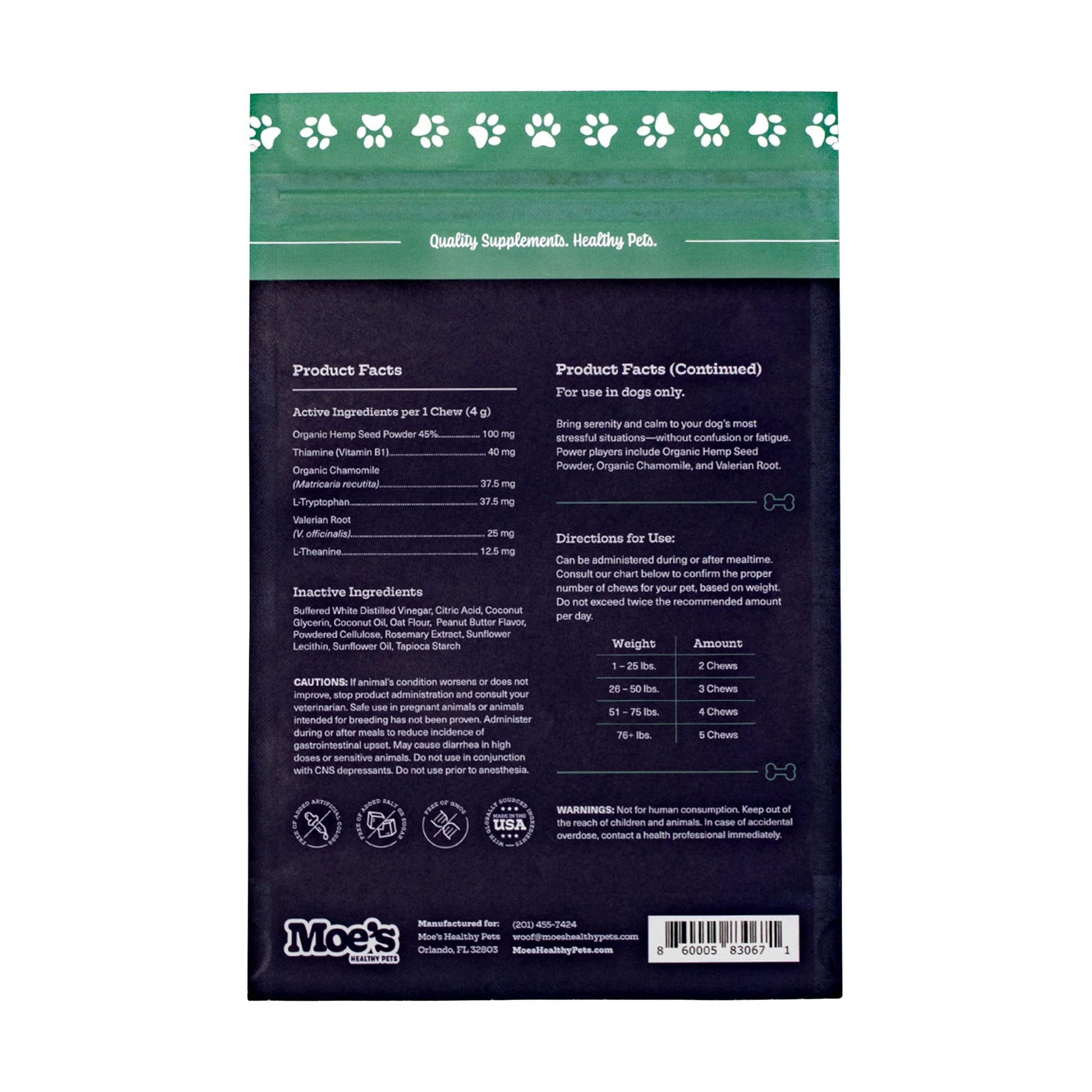 Moe’s Calming Chews for Dogs 90ct – Natural Anxiety Relief with Hemp, Chamomile, and Tryptophan – Calming Dog Treats for Separation, Fireworks, Travel and Storms (Peanut Butter)
