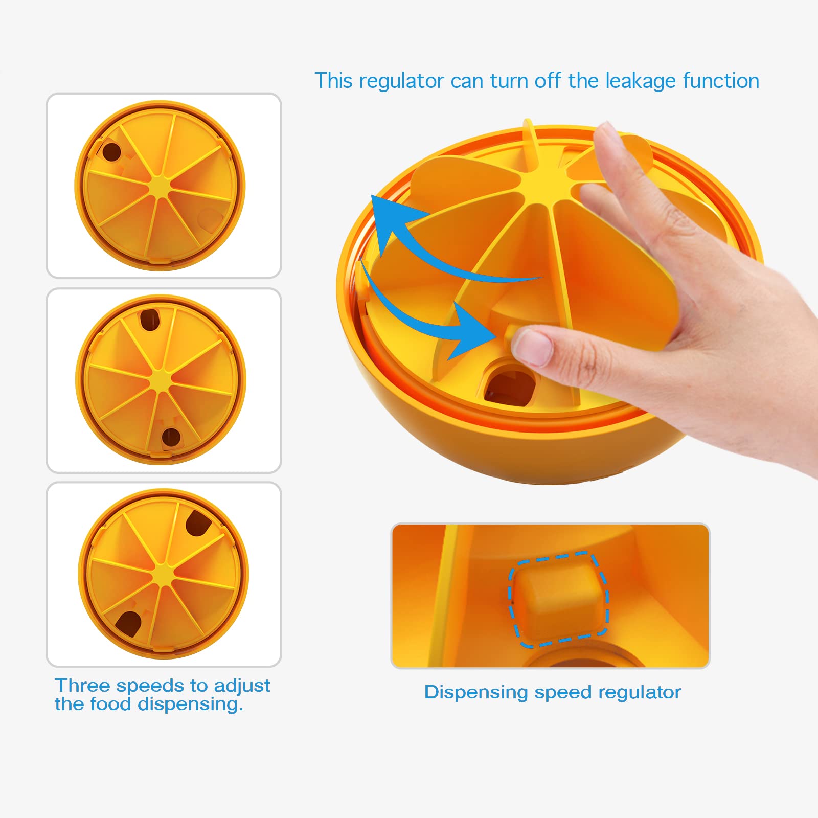 (Multi-speed adjustment of food leakage speed and difficulty):You can open one or two leakage holes, which can control the leakage speed, or this regulator can turn off the leakage function, which becomes a simple ball toy. The specification of the leakage hole can be adjusted. This product can support 95% of the dog food and dried meat on the market, so that dogs can eat different food.