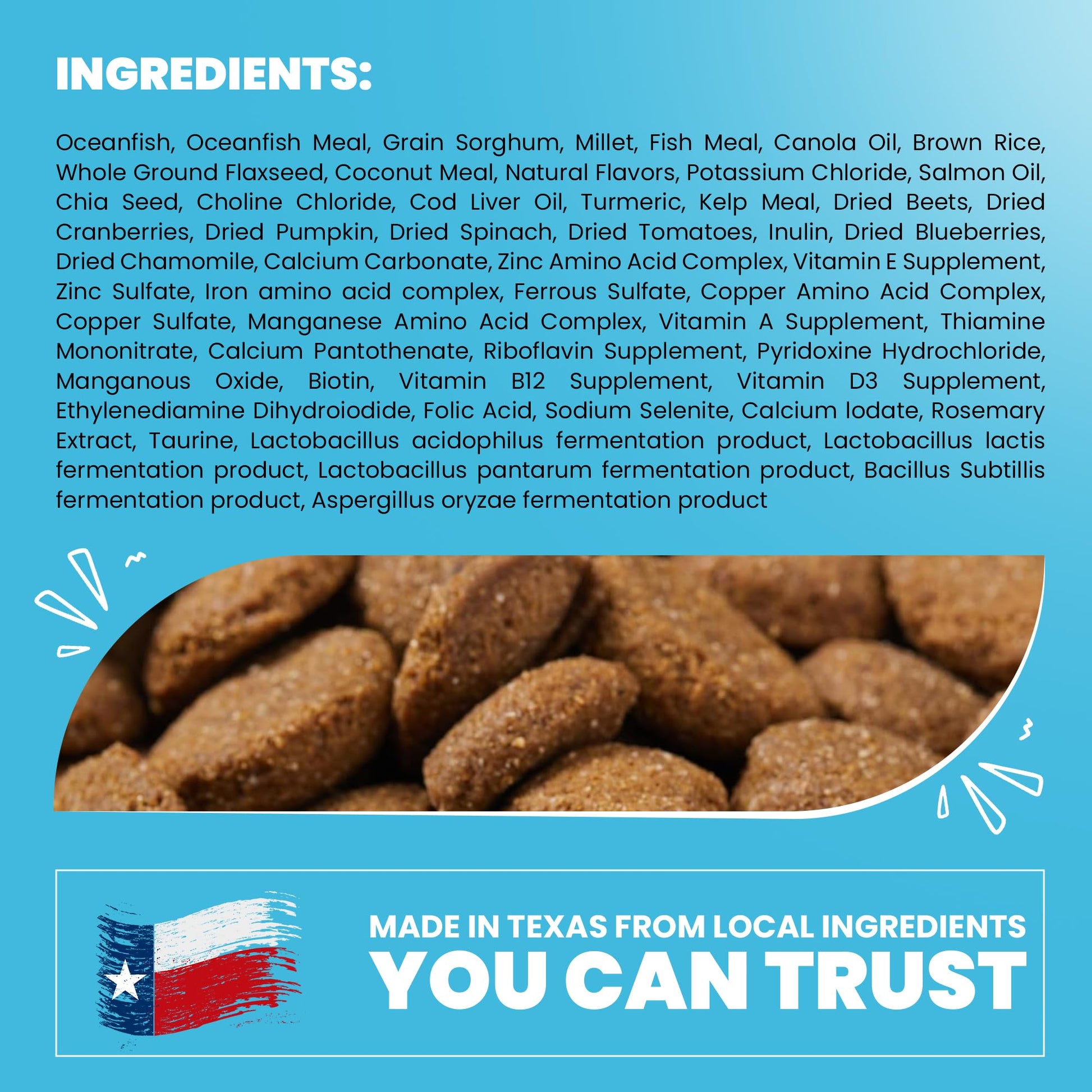 - SENSITIVE STOMACH & SKIN SUPPORT: Our Ocean Fish recipe is specially formulated for small breeds with sensitive digestion and skin issues. Rich in omega-3 fatty acids from premium fish sources, this diet promotes a lustrous coat and healthy skin. The easily digestible proteins and carefully selected ingredients soothe sensitive stomachs, reducing digestive upset. With added prebiotics and probiotics, this formula supports optimal gut health and immune function.
