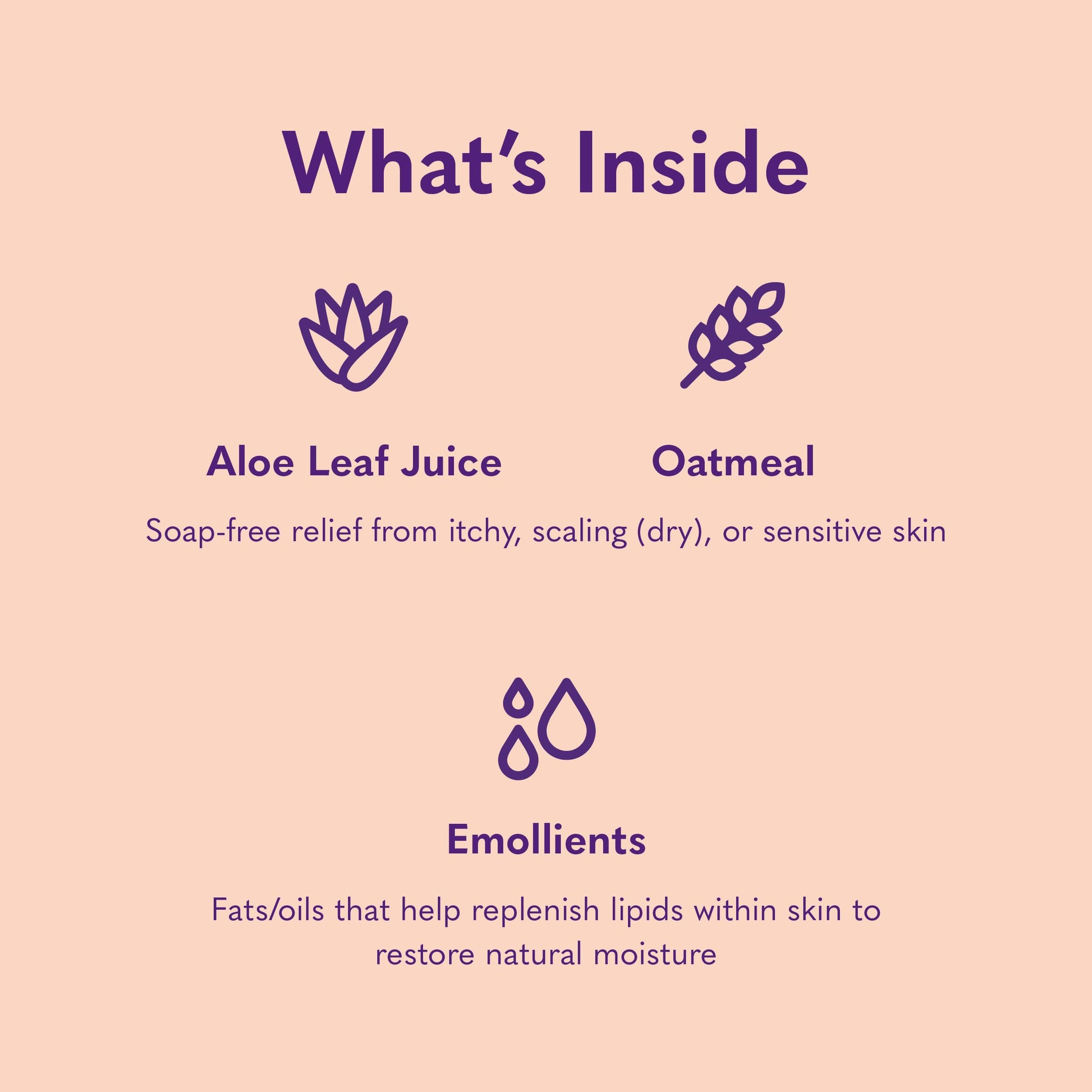 • USE TO RELIEVE ITCHY, DRY, OR SENSITIVE SKIN: A soap-free aloe leaf juice & oatmeal formulation that provides relief from itchy, dry, or sensitive skin with a pina colada scent