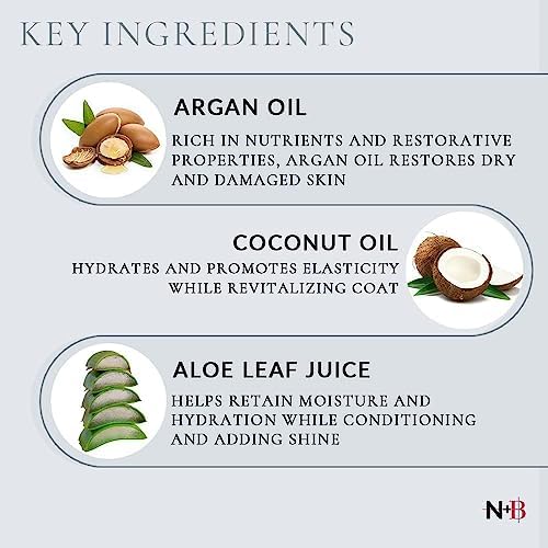 N+B Dog Shampoo | Shampoo for Dogs w/Coconut Oil, Organic Aloe Vera & Argan Oil | Grooms & Enhances Coat & Fur’s Natural Shine | Anti-Itch, Hypoallergenic, Eliminates Odor | 10oz