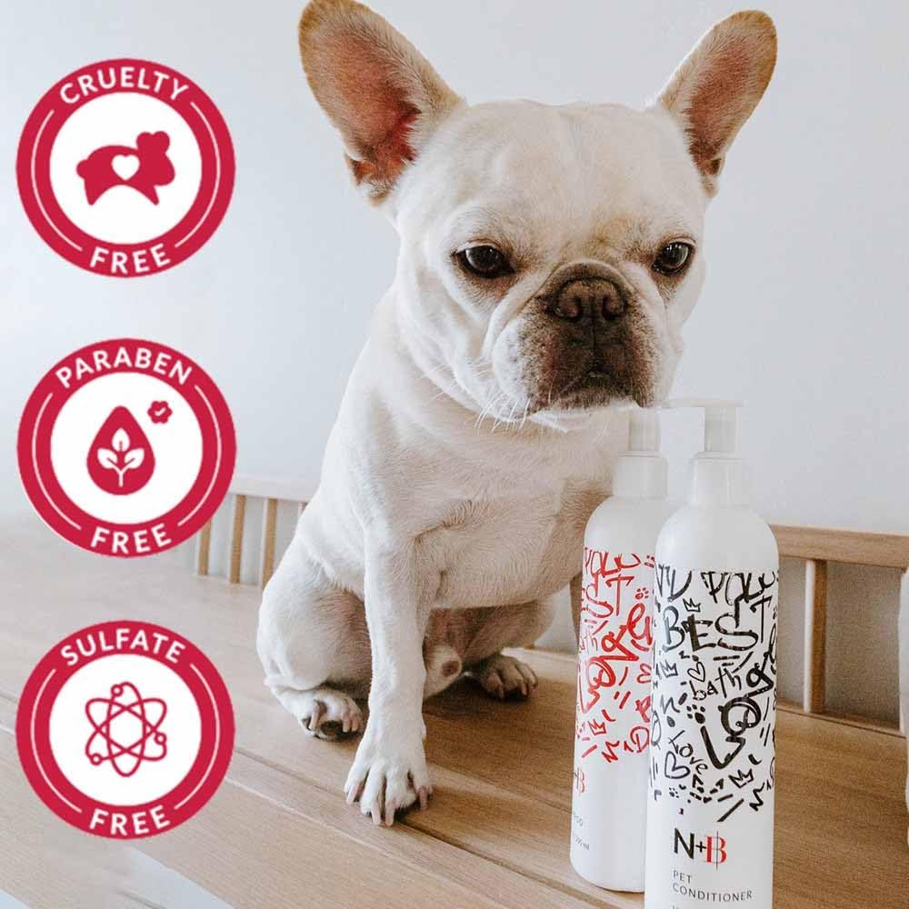 • DIRECTIONS FOR USE: Wet dog with warm water from head to tail. Apply shampoo liberally, making sure to avoid eyes and ears. Lather gently yet thoroughly into the coat and skin. Rinse completely until the water runs clear. For best results, follow with N+B Pet Conditioner.