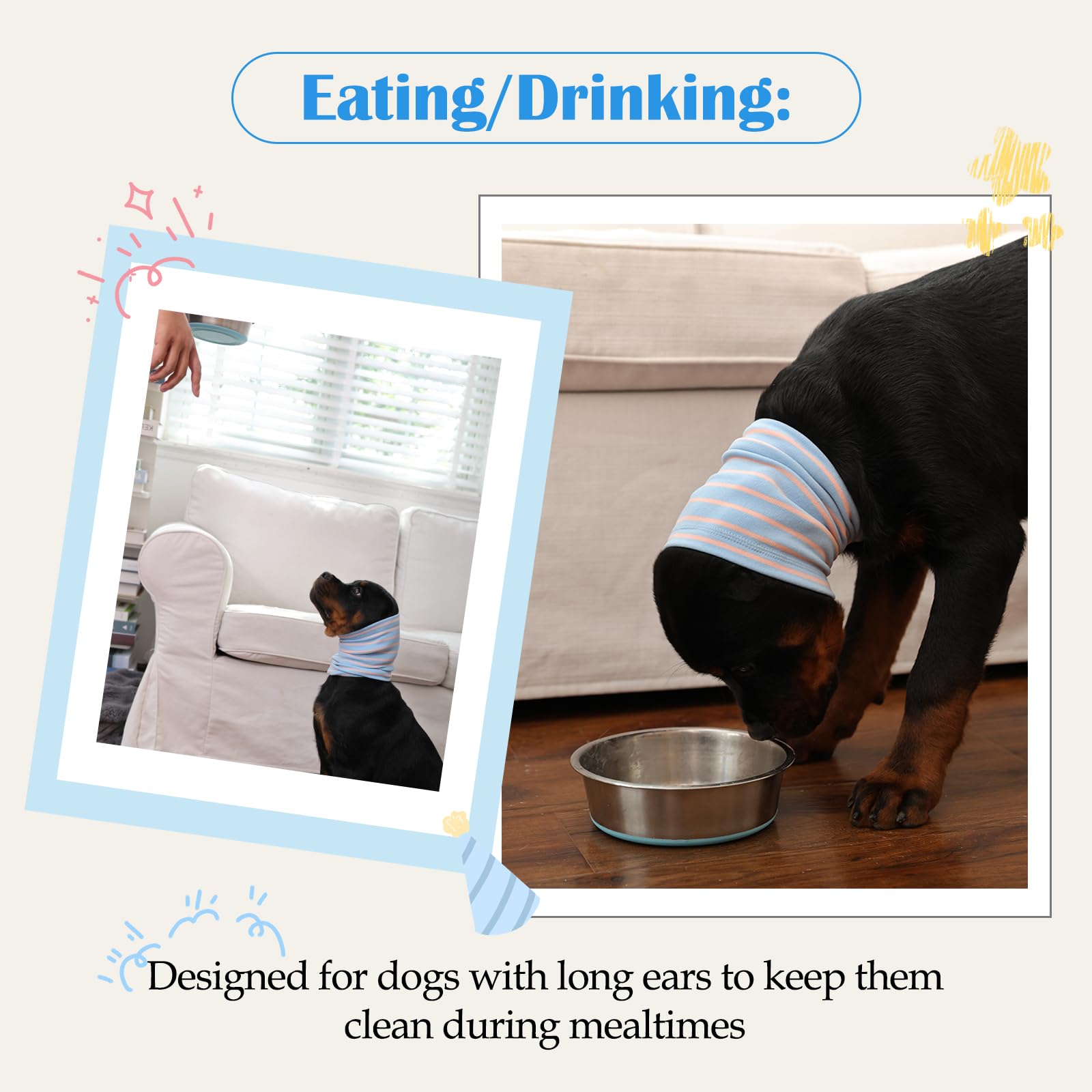 • Breathable and Soft Ear Cover: Made of 90 polyester, 10% spandex, snoods for dogs prevent moisture buildup and neck chafing. Stretchy fabric securely wraps ears during baths/swimming, keeping long-haired dogs' fur away from food/water. Retains heat for cold weather use as a warm scarf. Protects surgical wounds and prevents post-bath ear infections