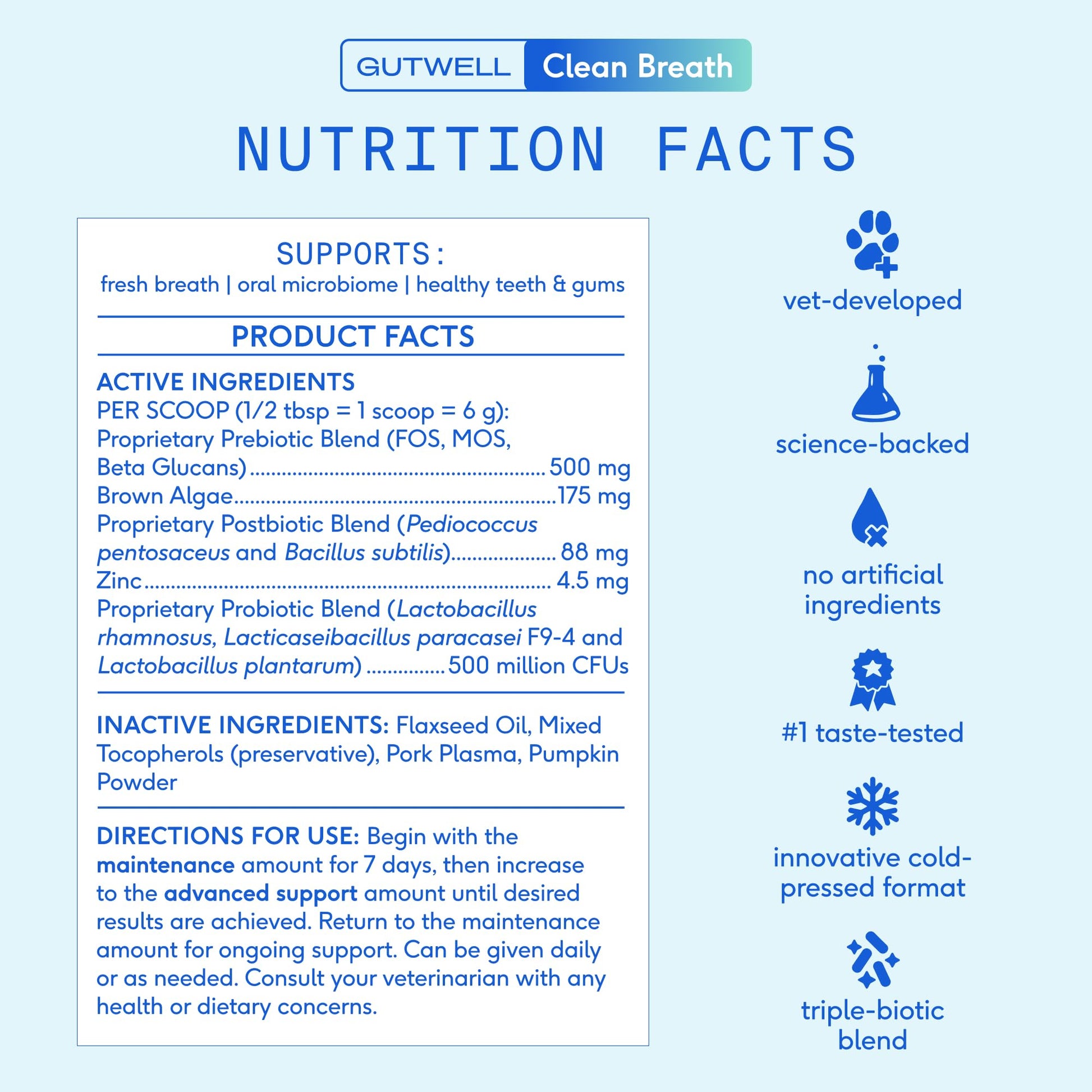 - BROWN ALGAE & ZINC FOR TARGETED DENTAL SUPPORT: These powerhouse ingredients team up with our triple-biotic blend to support dog teeth cleaning & break down plaque, fight odor at the source, and support healthy teeth and gums to level up your doggie dental routine.