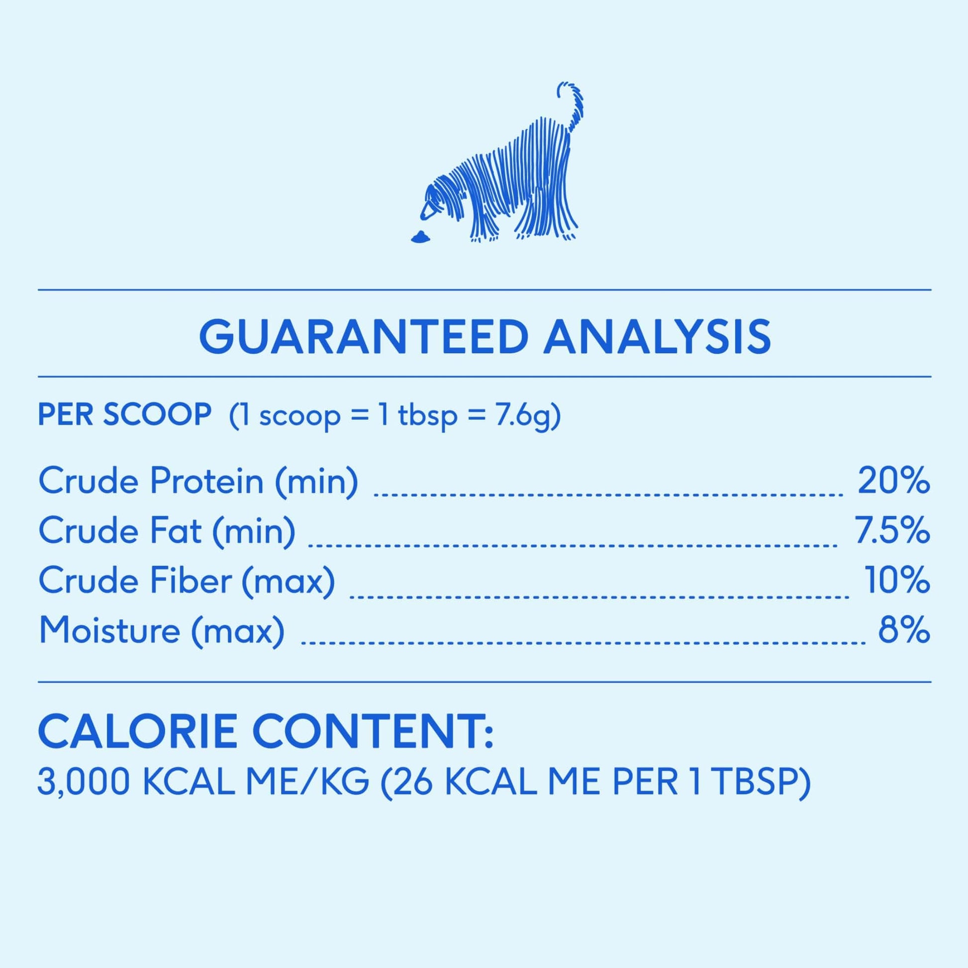 • CONVENIENT & MESS-FREE SERVING: This fiber supplement for dogs skips the mess of canned blends with a simple scoop-and-serve routine. No fridge needed. This dog multivitamin powder stays fresh and ready whenever your pup needs it. Please Note: Packaging may vary due to design changes. Contents remain unchanged in quality and ingredients.