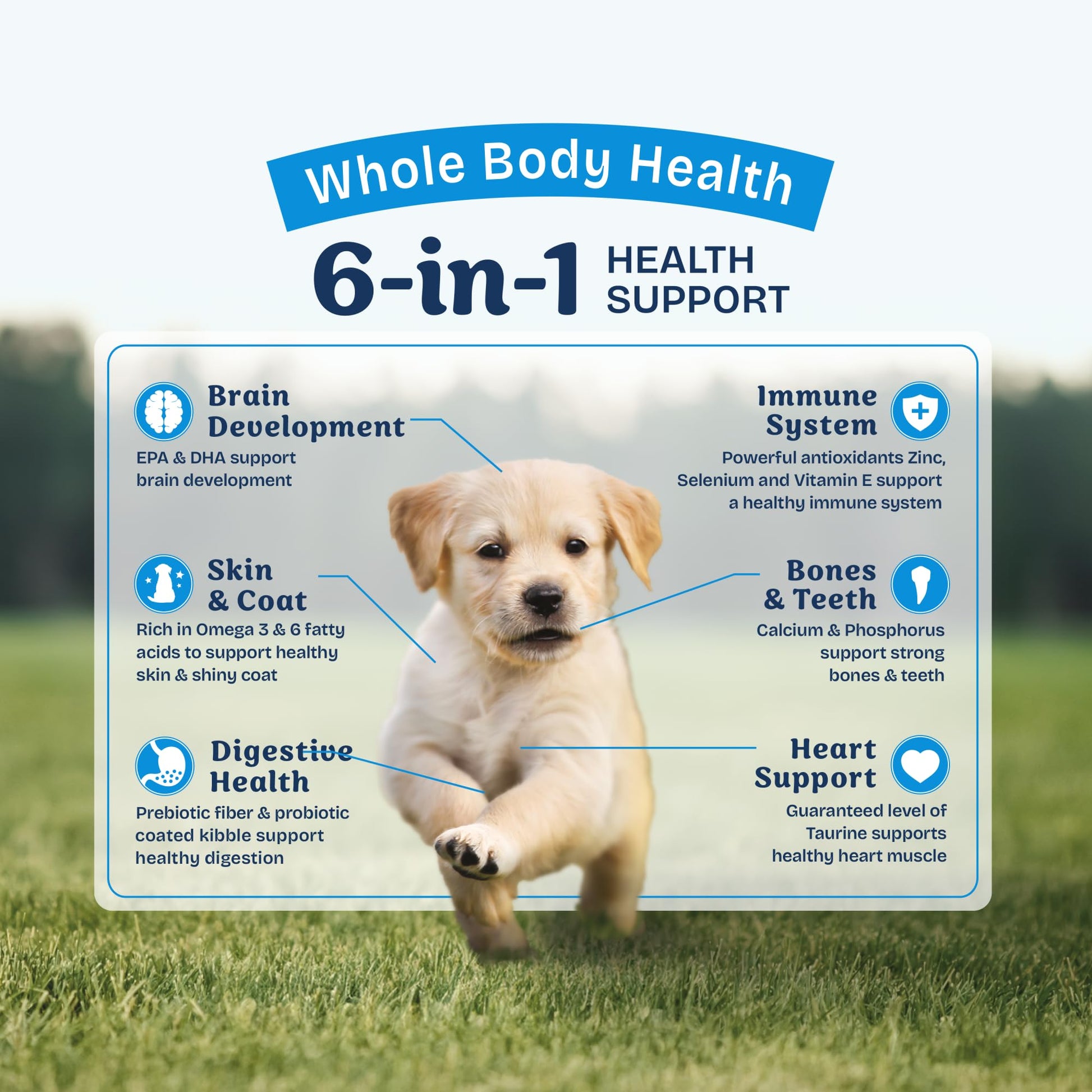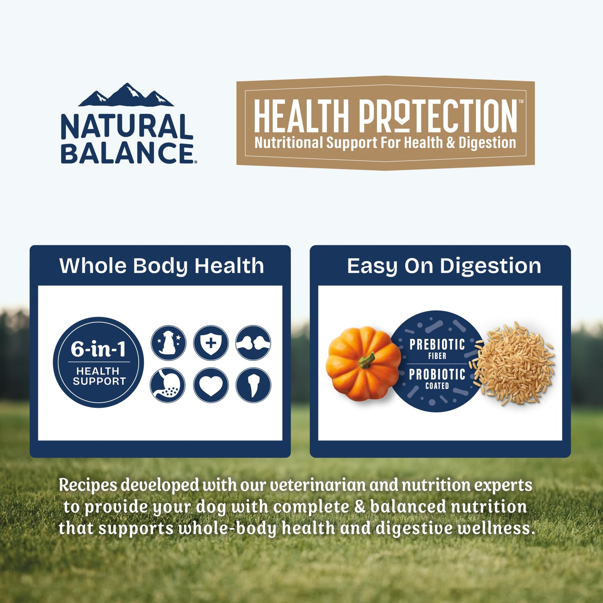 - 6-IN-1 HEALTH BENEFITS: Brain Development, Digestive Health, Skin & Coat, Heart Support, Bones & Teeth and Immune System. With multiple health focuses, Natural Balance Health Protection offers whole body health puppy food.