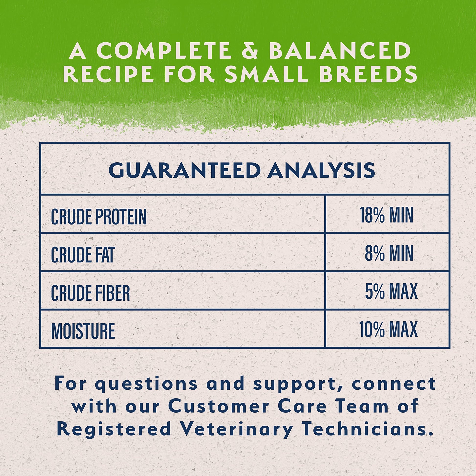 - SPECIALLY FORMULATED FOR SMALL DOGS Made with the same balanced nutritional philosophy, our Small Breed recipes are tailored to your dog. Every bite is packed with flavor! Smaller size accommodates smaller jaw sizes for easier eating
