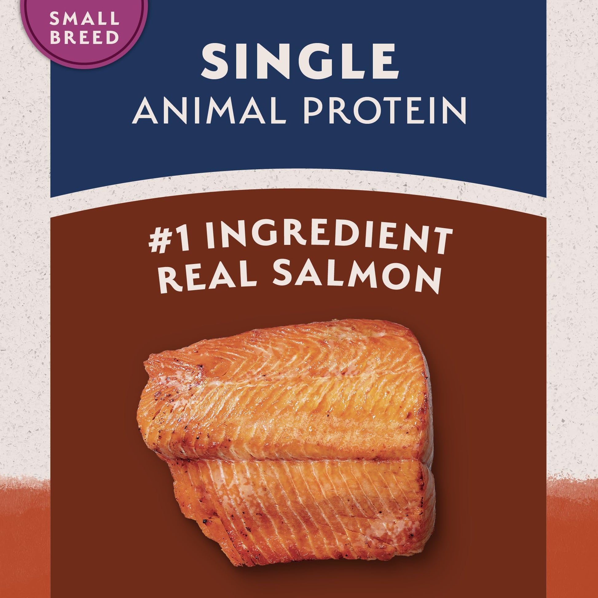 - SALMON IS THE FIRST ANIMAL PROTEIN SOURCE providing essential protein and amino acids to help maintain strong muscles; Sweet Potatoes are included as a grain-free source of fiber to help support digestive health; Contains (1) 4-Pound Bag