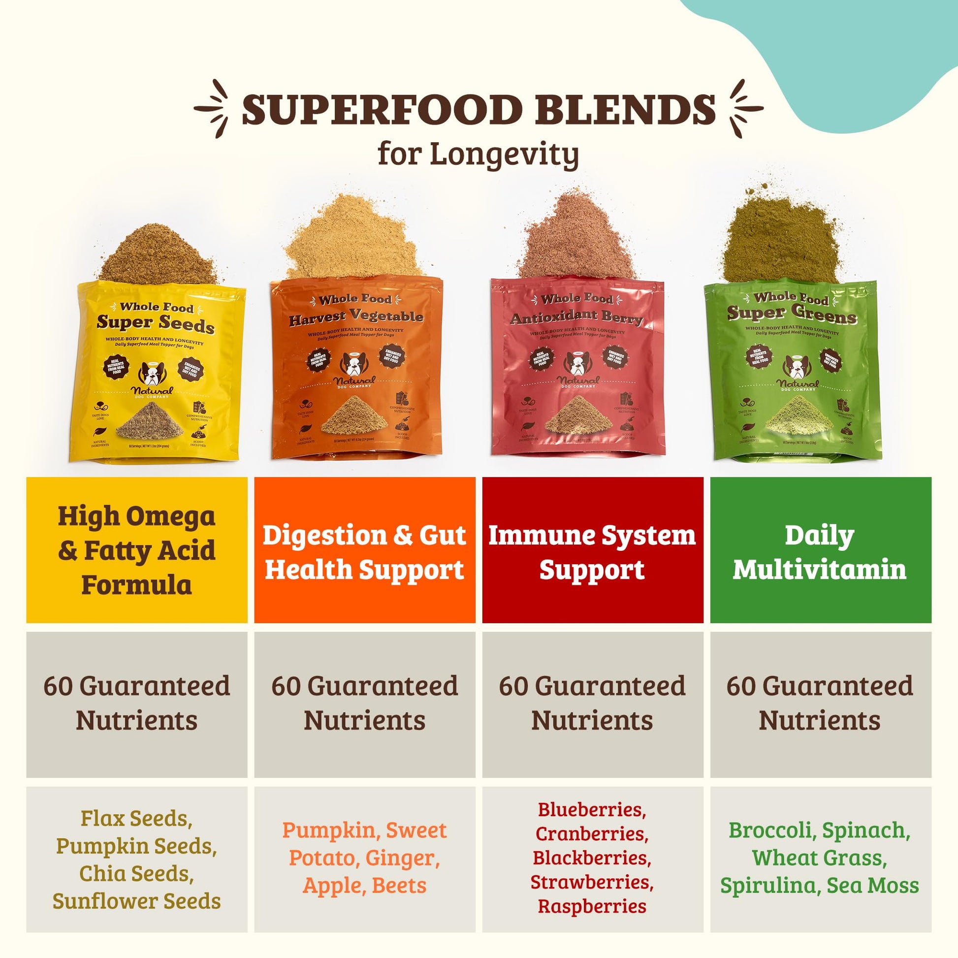 ENHANCE MOBILITY & FLEXIBILITY: Give your dog the gift of movement with Super Greens. Our blend includes whole food ingredients that promote joint health and flexibility, helping active dogs maintain their lifestyle and older pets move with ease. With over 60 nutrients in every serving, our Granules are irresistible to all dogs, breeds, and sizes.