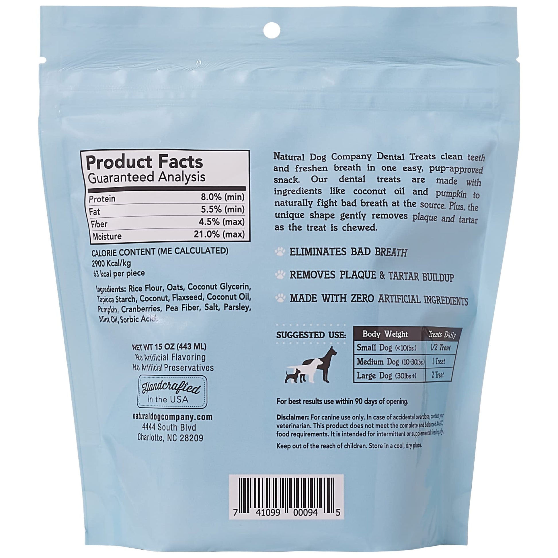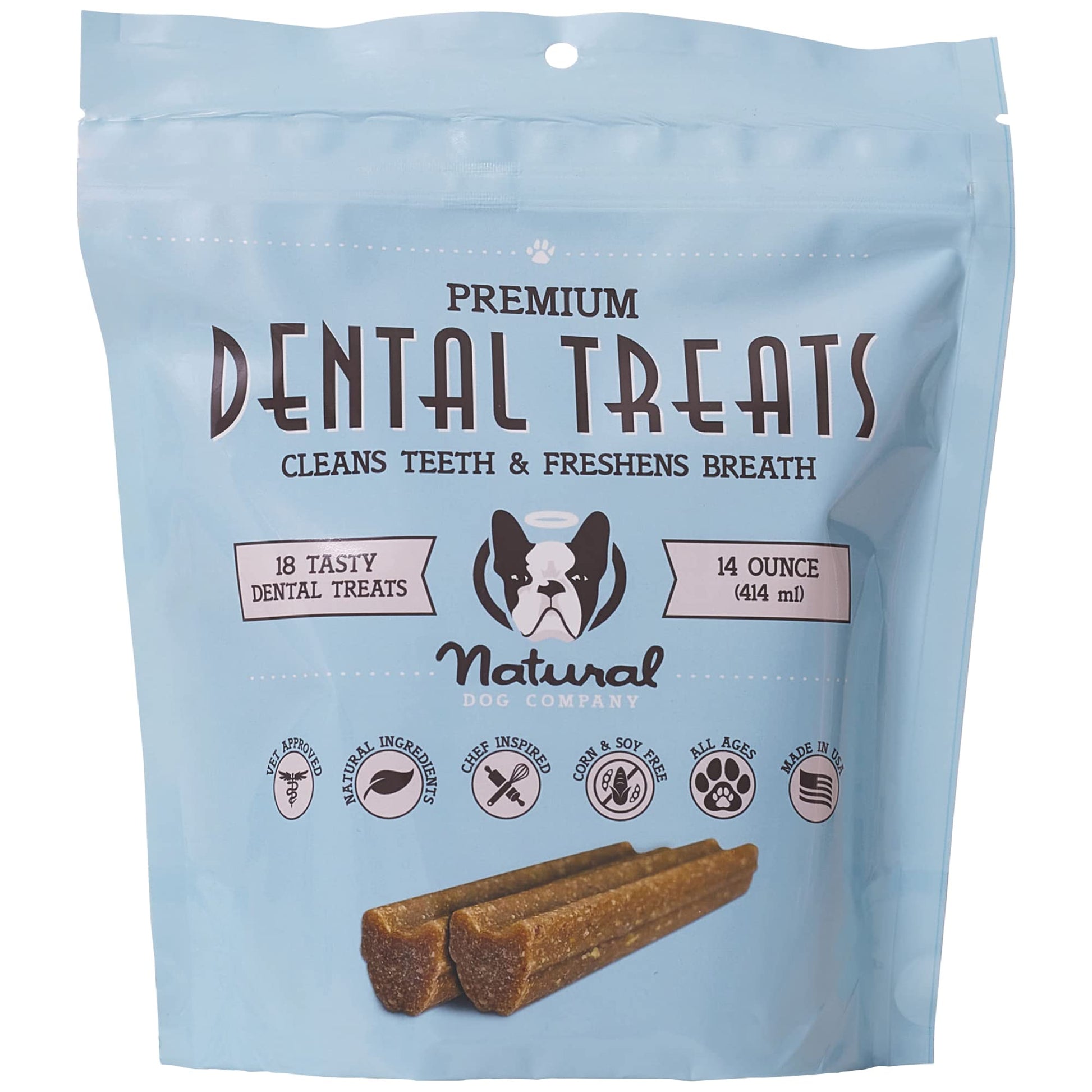 - DAILY DOG TEETH CLEANING TREATS: Includes 1 bag of Natural Dog Company Dental Treats (18 count) to provide refreshing healthy support for your dogs dental care.