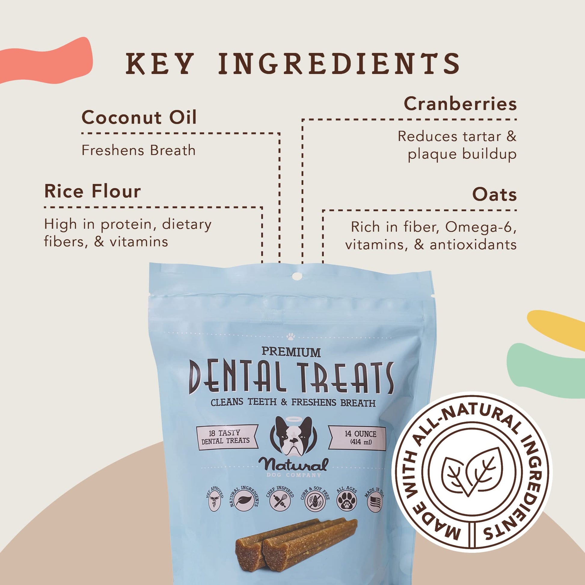 Natural Dog Company Premium Dog Dental Chews, Natural Dental Sticks to Clean Teeth and Freshen Breath, Helps Control Plaque and Tartar Treats for All Breeds and Sizes, Made in USA, 18 Count