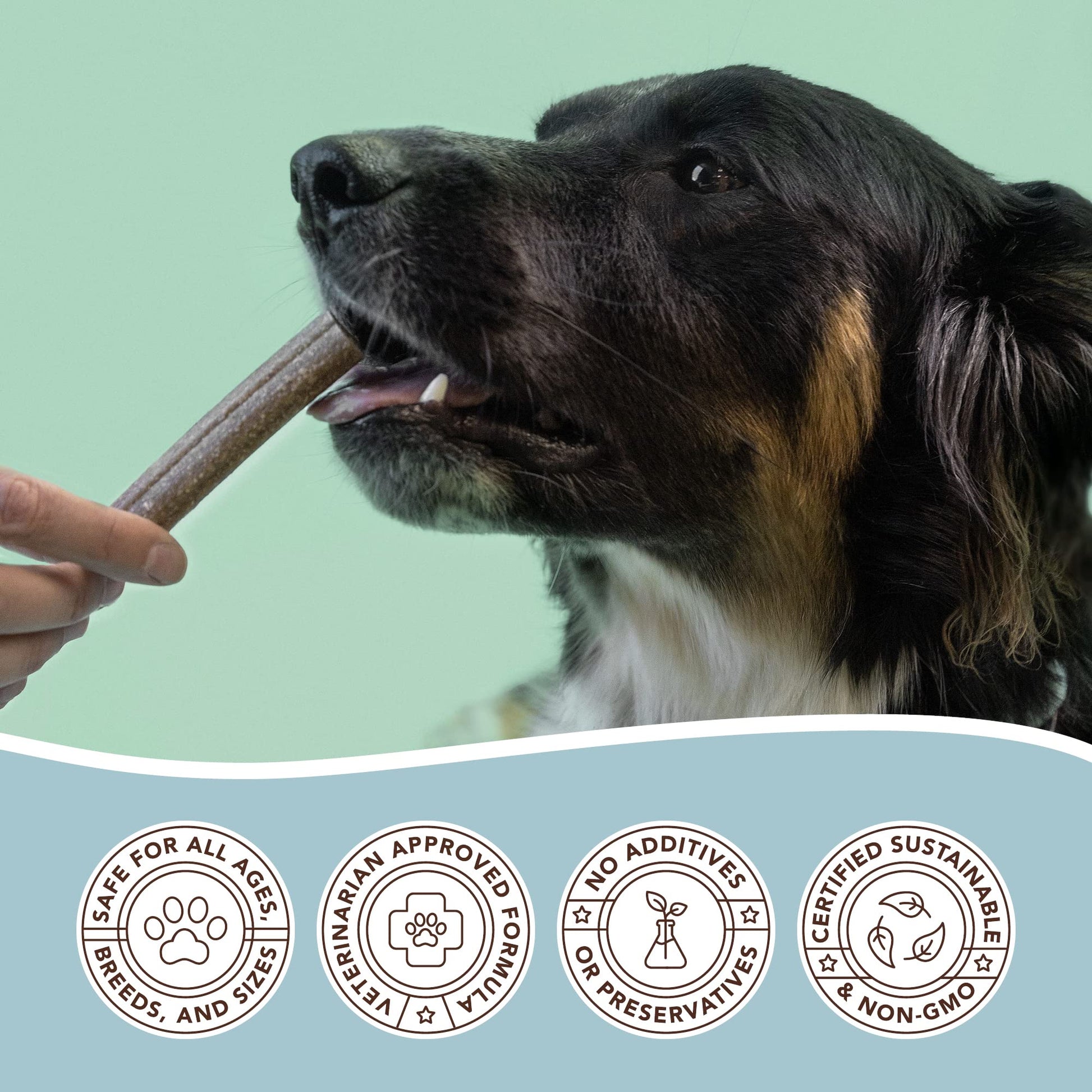 - CAREFULLY CRAFTED IN THE USA: All our dog products are proudly made in the USA and safe for all ages, sizes, & breeds. Recommend one daily chew for maximum effectiveness.