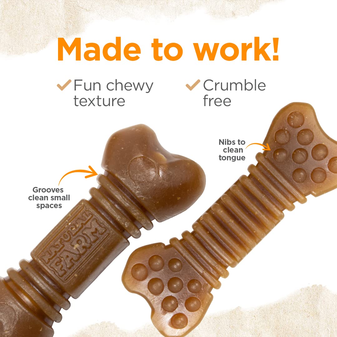 - COMPLETE NATURAL DENTAL TREATS - Our all natural dental chews help to fight plaque and tartar while freshening breath and massaging gums. Small grooves at the end of the bones are designed to fit into those hard-to-reach places between and behind teeth. Nibs (small bumps) help to clean the tongue.