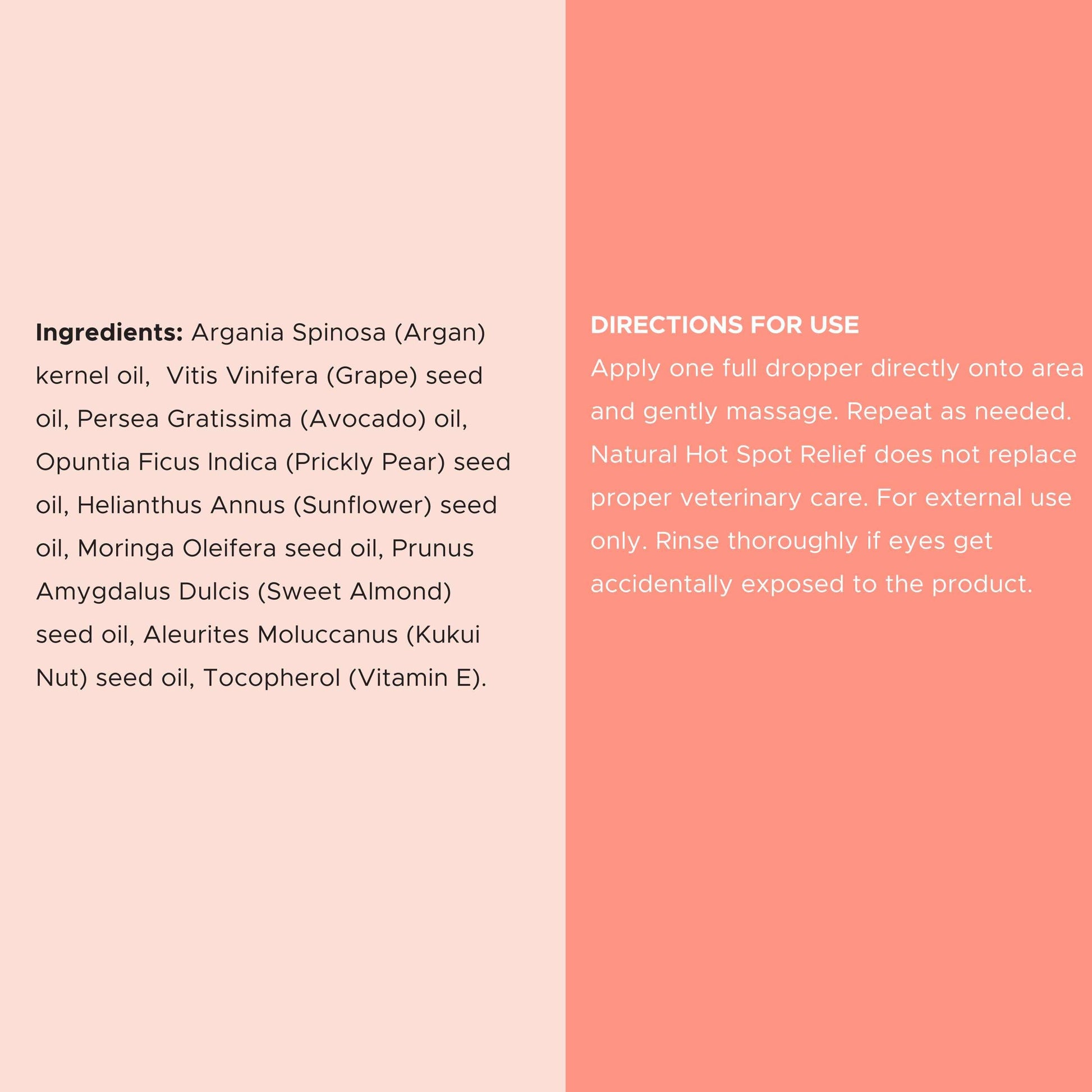 • Our natural ingredients include sunflower oil aids with wound healing, and argan oil moisturizes the skin and helps to prevent dryness, helping the skin heal and recover from hot spots.