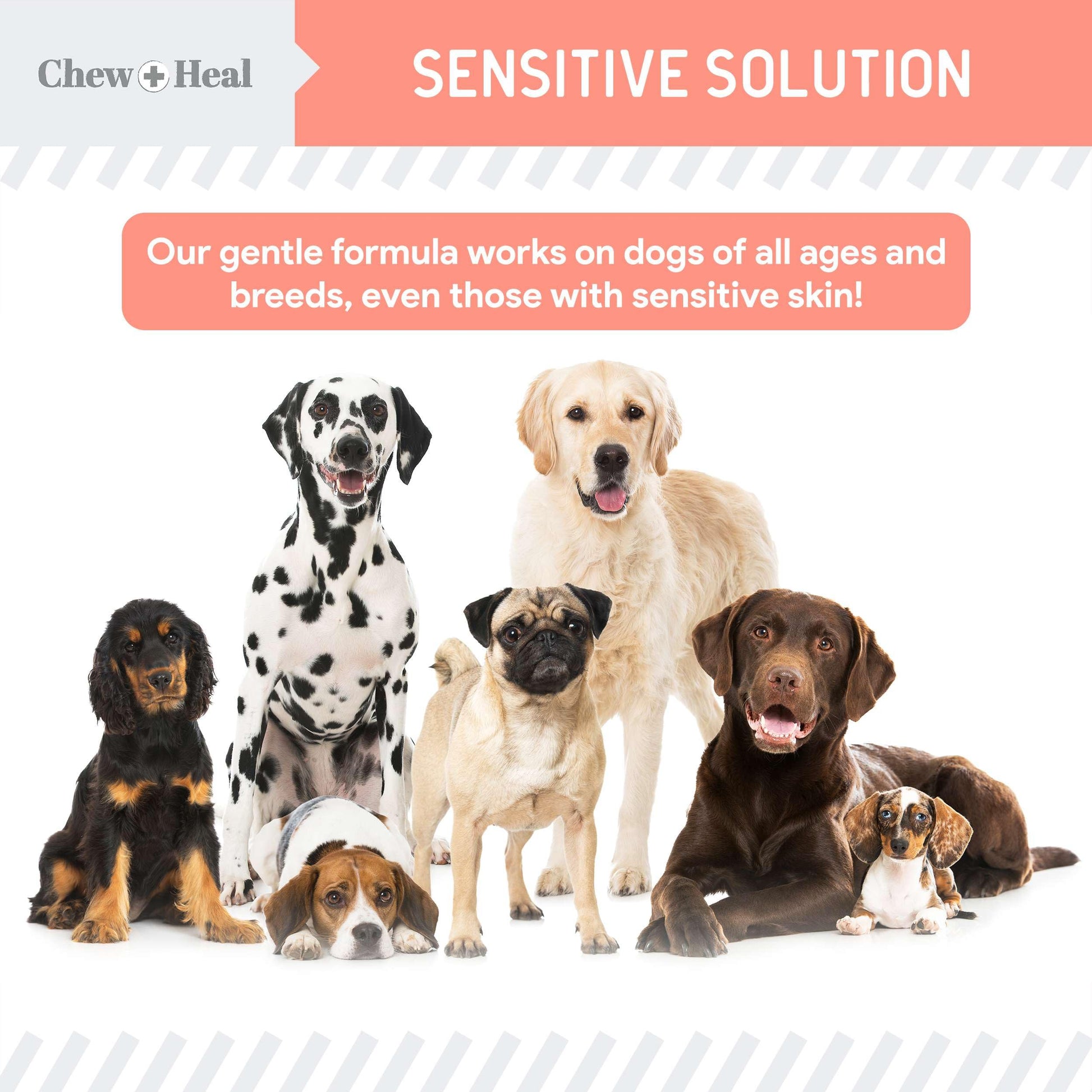 • Chew + Heal's hot spot oil is the best natural hot spot treatment for dogs helping your dog to feel their best without the harsh chemicals.