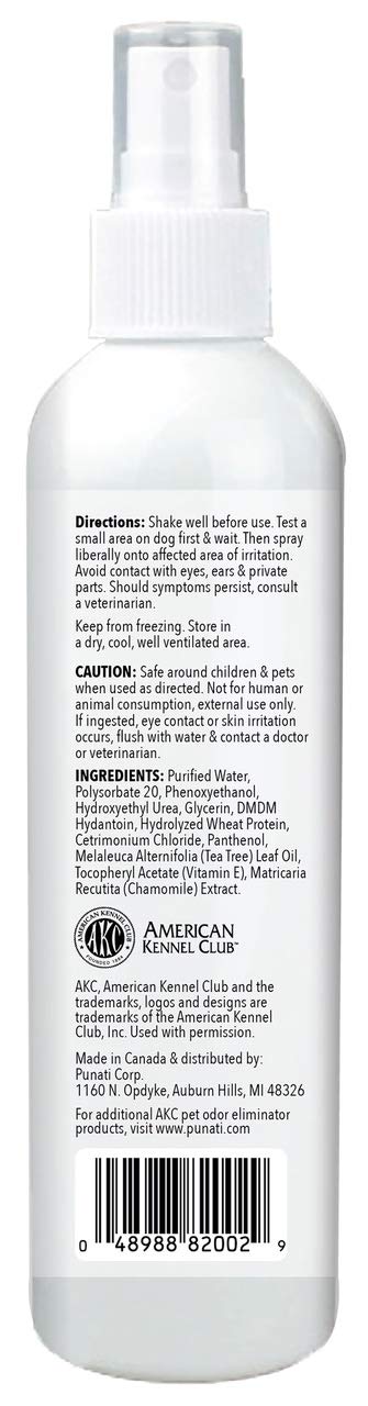 MOISTURIZE SKIN & COAT - Each shipment contains a 2 Pack of our Naturals Tea Tree and Chamomile infused anti-itch and hot spot formula with 8 ounces per bottle. The Spray will moisturize your dogs skin and coat.