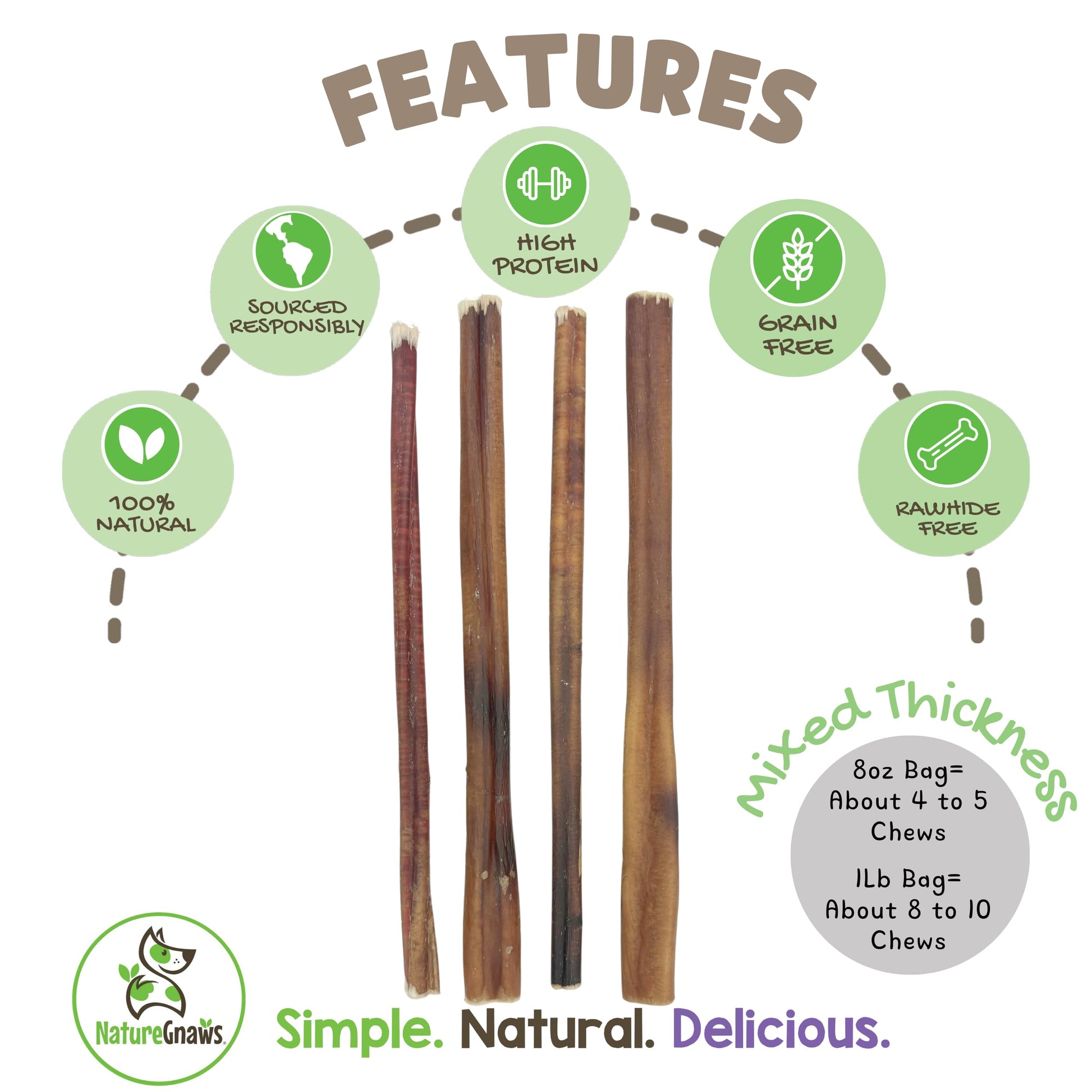 Nature Gnaws Bully Sticks for Dogs 11-12" (8oz) - Mixed Thickness - Long Lasting for Aggressive Chewers and Large Dogs - Natural Beef Dog Chew Bones