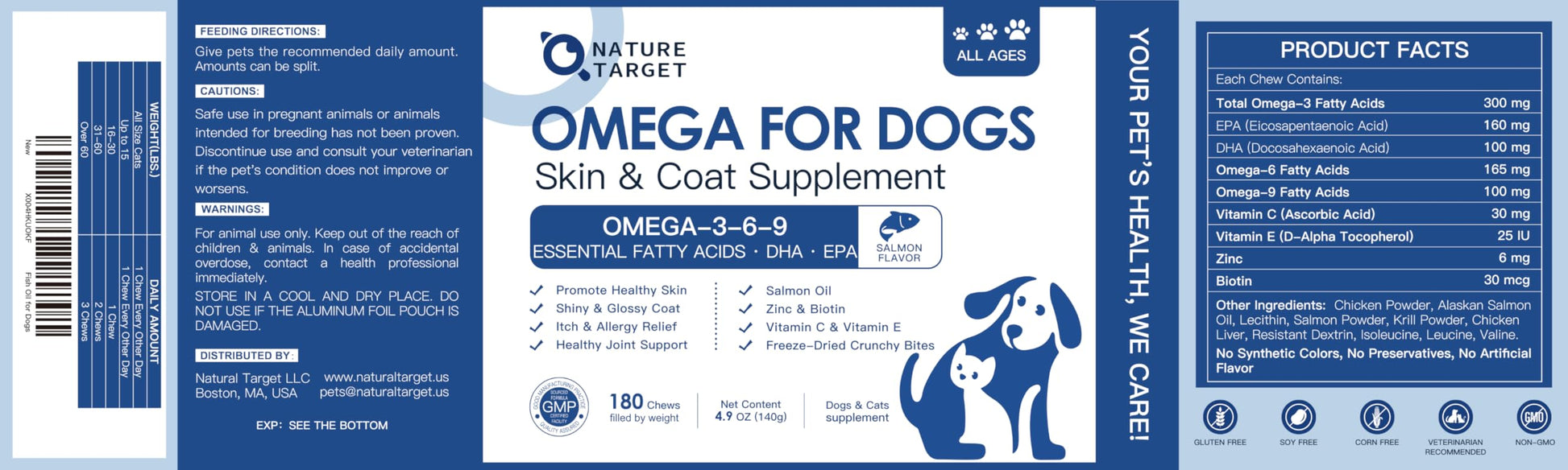 • Skin and Coat Supplement for Dogs: Nature Target fish oil omega 3 supplements for dogs contain fatty acids, Biotin, Zinc, and Vitamin C & E to relieve dry/sensitive skin, control shedding and promote shine. Comprehensive support for your furry friend