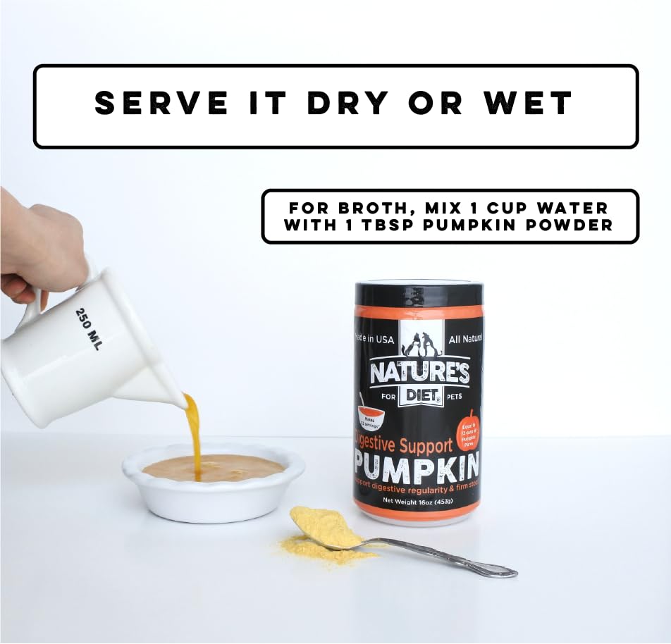 - MADE IN USA - Digestive Support Pumpkin Powder is made with Human Grade Ingredients to Nourish Your Pet and Aid With Digestion, Nutrition & Provide Fiber Support for Firm Stools.