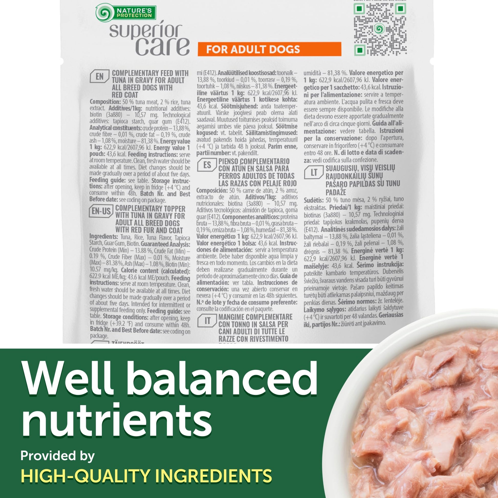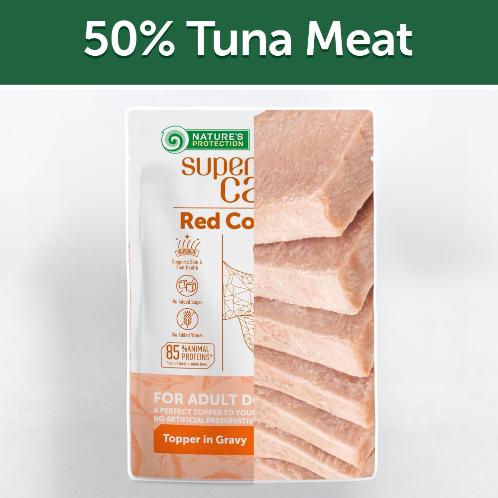 Nature's Protection Wet Dog Food Pouches for Small & Large Breed - High Protein, 24-Pack Soft Dog Food Toppers for Adult Red Fur Dogs (Superior Care - Tuna Fish, 2.46-oz)