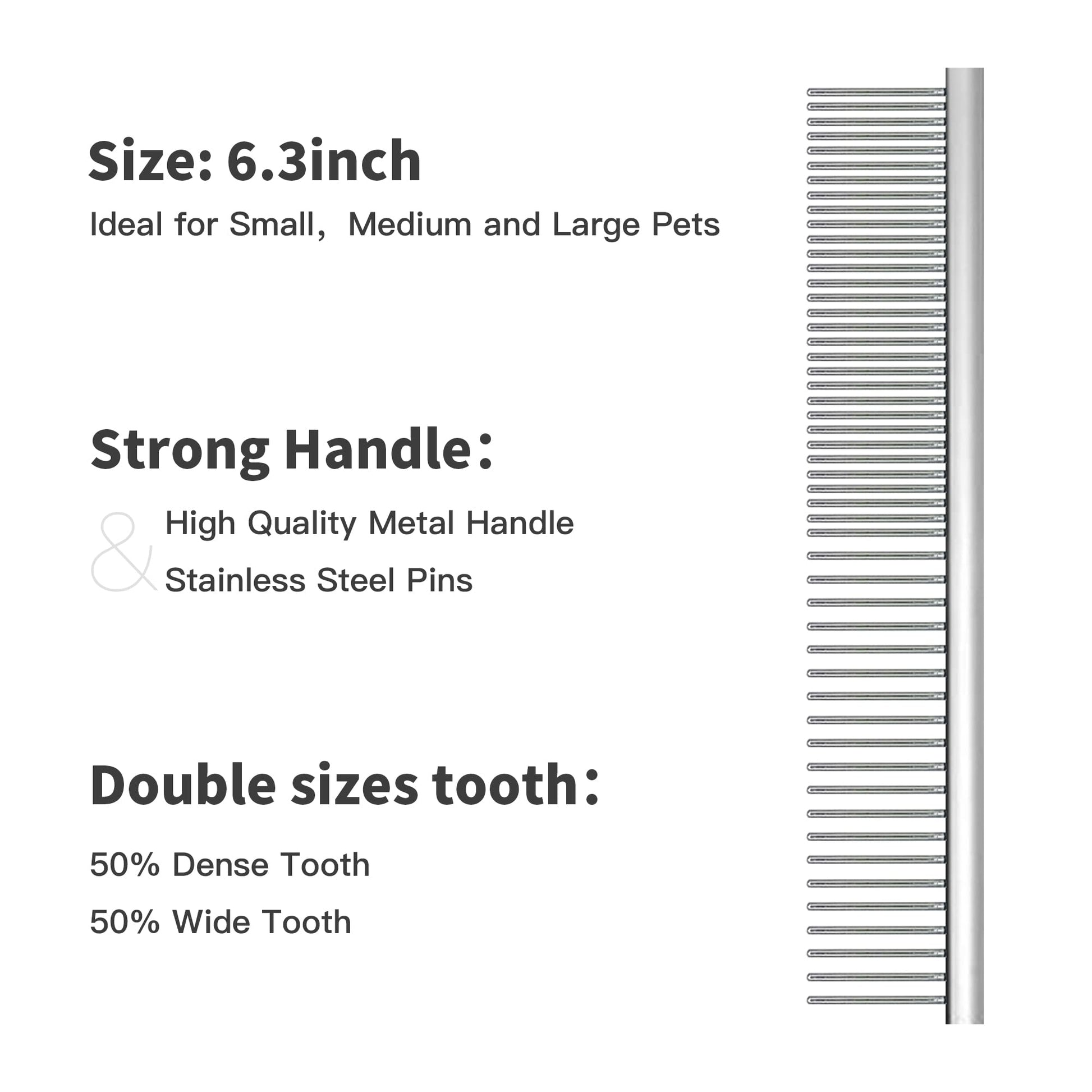 • 2 IN 1 STAINLESS STEEL COMB: The pet comb has high quality anti-static stainless steel round teeth that are strong enough. Our dog grooming comb features round teeth that break up tangles and effectively remove loose hair, dander dirt trapped beneath fur. NeatHoiho cat comb naturally support the health of your furry best friend by boosting circulation