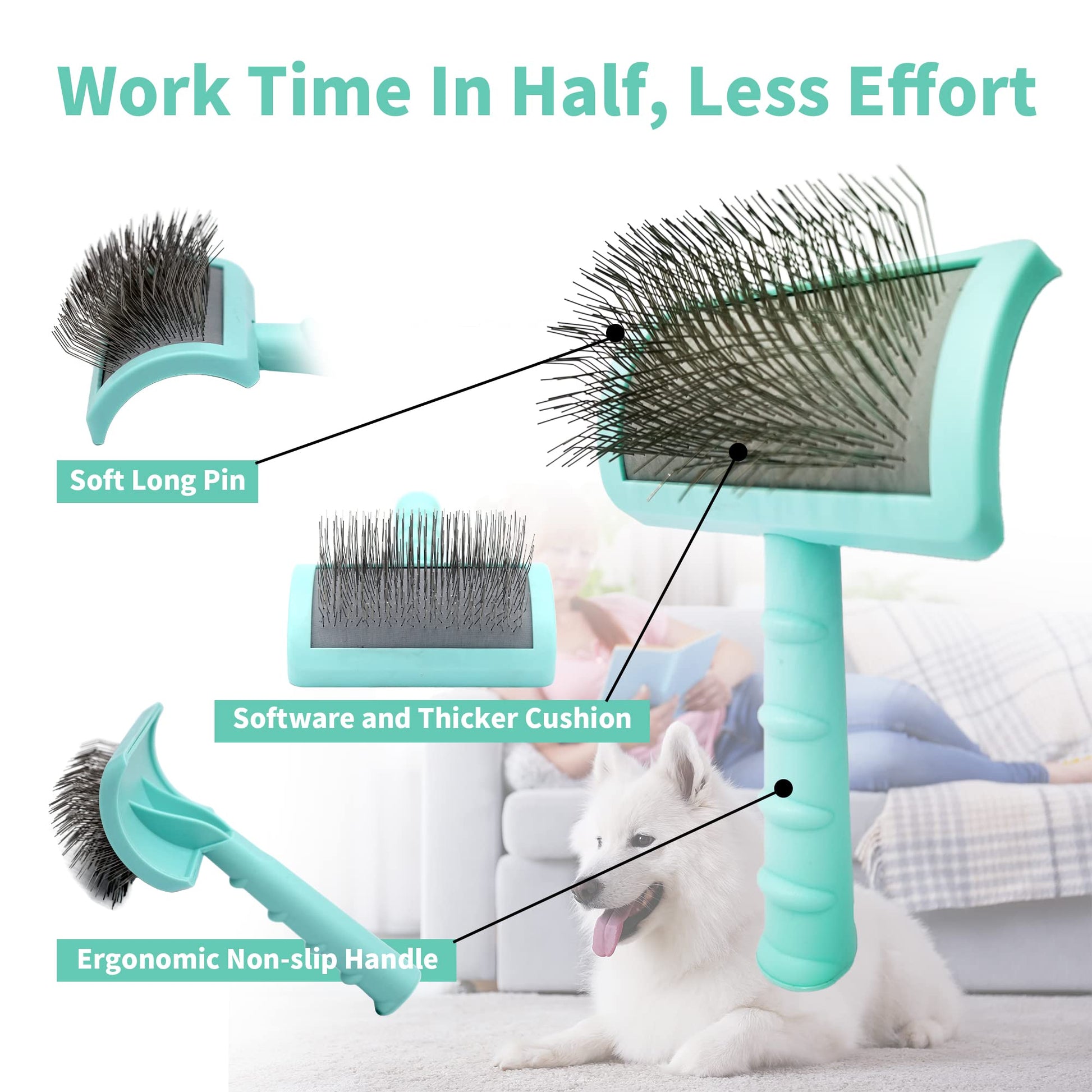 Neathoiho Large Slicker Brush & Green-comb Value Kit, Extra Long Pin Dog Grooming Brush for Curly Hair Goldendoodles, Removes Long and Loose Hair & Undercoat