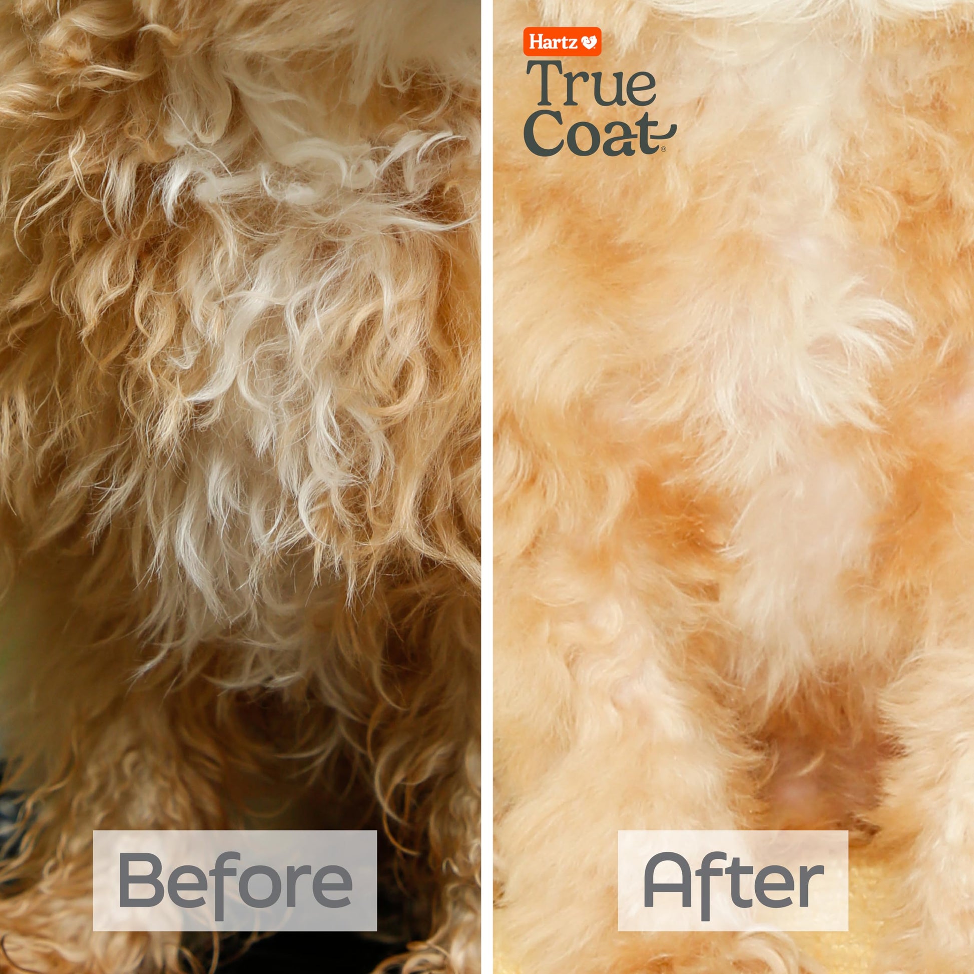 Details: Not all dog coats are the same, so why use a dog shampoo formulated for all coat types? Hartz True Coat dog shampoo is developed for your dog’s unique coat type. This gentle shampoo is specifically formulated for breeds with curly or wavy coats such as Poodles, Doodles, Bichon-Frises, Old English Sheep Dogs, and more. With a unique blend of oat milk, coconut oil and shea butter, True Coat Curly or Wavy Coat dog shampoo helps to revive the texture in curls and waves, by restoring moisture, and keeping the dog’s fur conditioned and tangle-free. True Coat dog shampoo contains naturally derived ingredients to help promote healthy skin and coat, leaving your dog’s coat clean, hydrated, and smelling fresh – bringing out your dog’s true, natural coat!