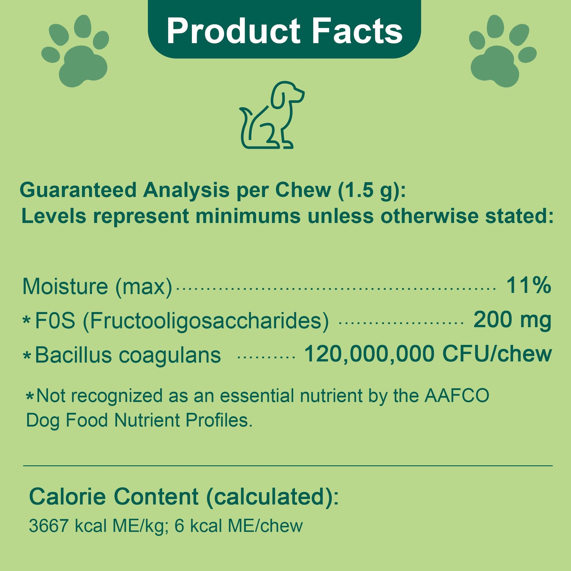 - Tailored Dosage: Feeding directions tailored to your dog’s weight (1 chew per 25 lbs) ensure optimal support for dogs of all sizes.