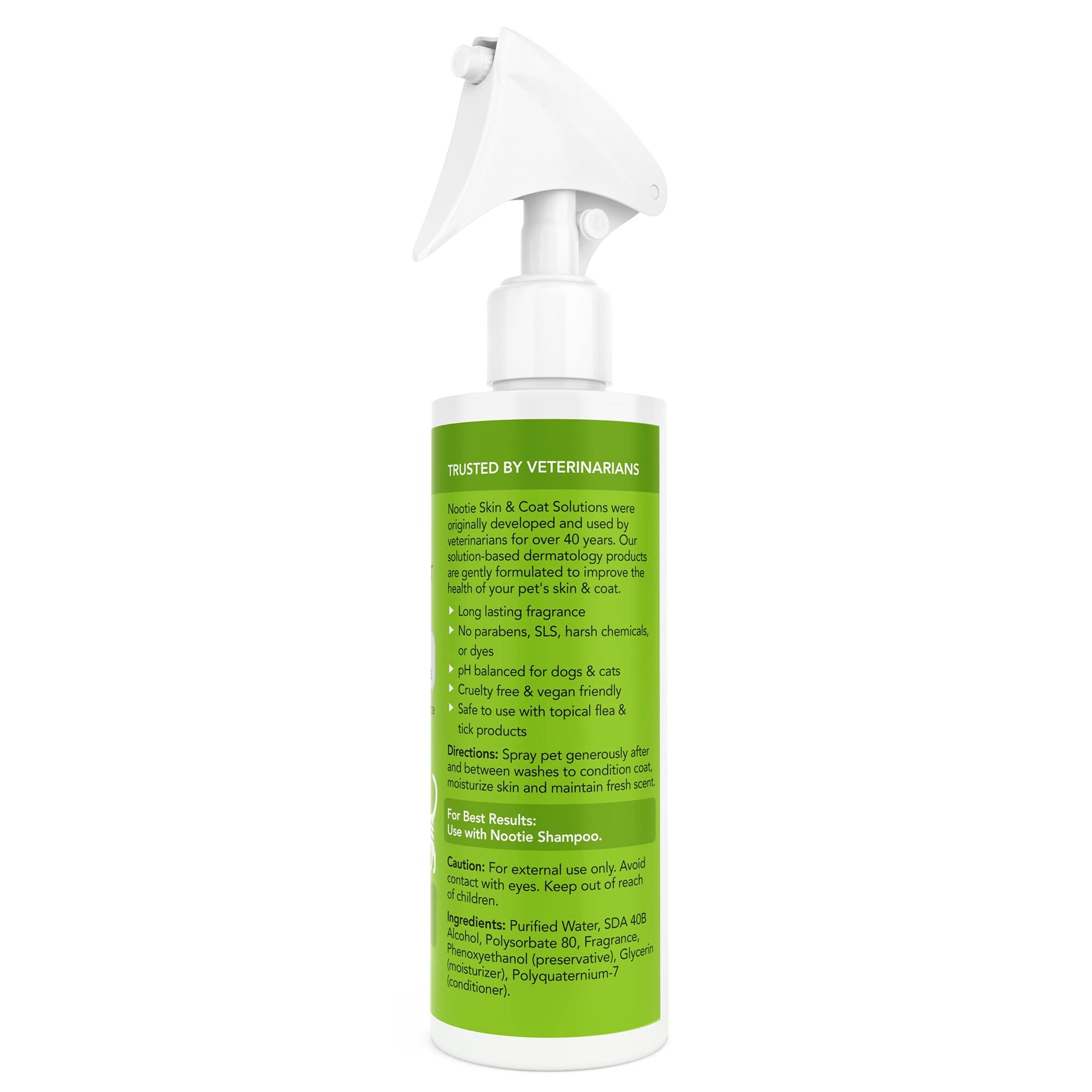 Details: Nootie's Daily Spritz The fresh scent of our Cucumber Melon fragrance will keep your pet smelling fresh and clean between baths while conditioning the skin and coat. Nootie's Daily Spritz is made with natural ingredients and is soap and paraben free. It's long lasting and made with a gentle, conditioning formula that contains no sulfates or harsh chemicals. Long lasting fragrance. Made with natural ingredients.No sulfates or harsh chemicals; Safe to use along with topical flea & tick products; Contains Glycerin for a moisturizing coat.