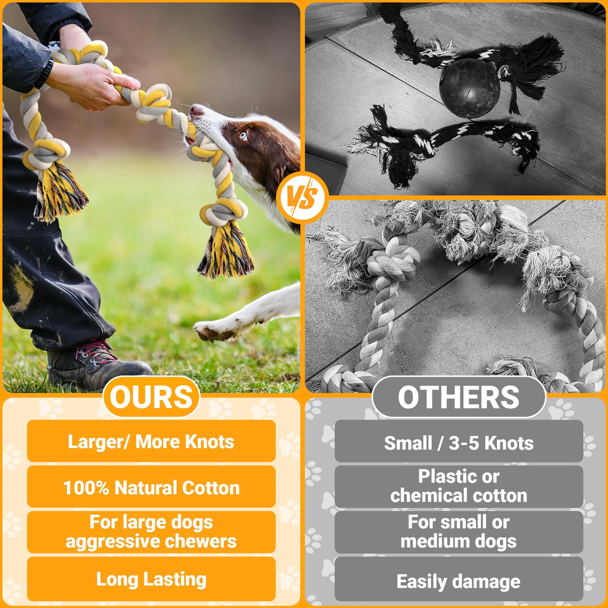 • 🔥Long Tough Rope: 3.3 feet long and has 6 knots! This rope toys for dogs is tough enough to accompany dog for a long time. When chewing, it will help clean teeth and release their energy.