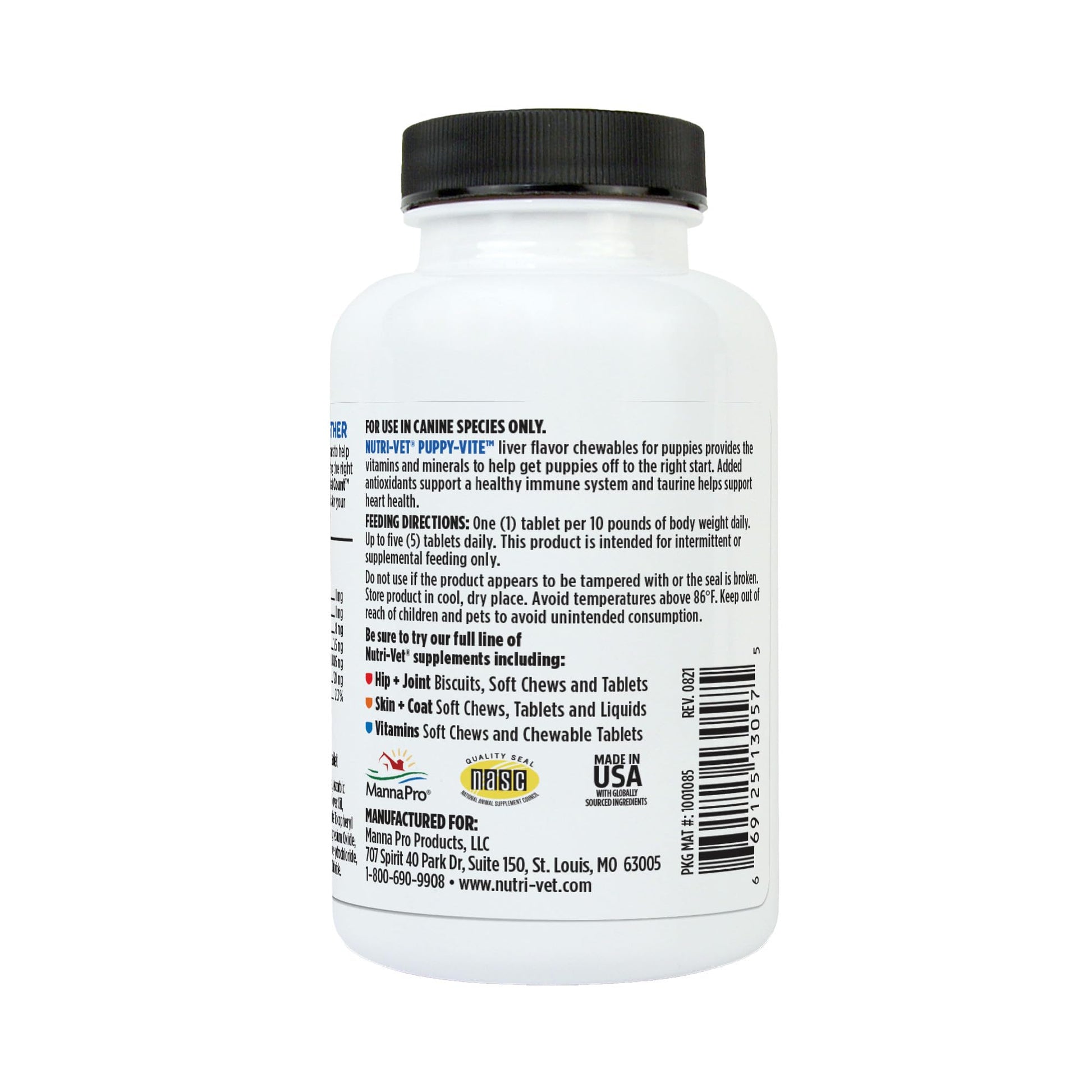 Details: NUTRI-VET Puppy-Vite™ Chewables for Puppies provides the vitamins and minerals to help get puppies off to the right start. Added antioxidants support a healthy immune system and taurine helps support heart health.