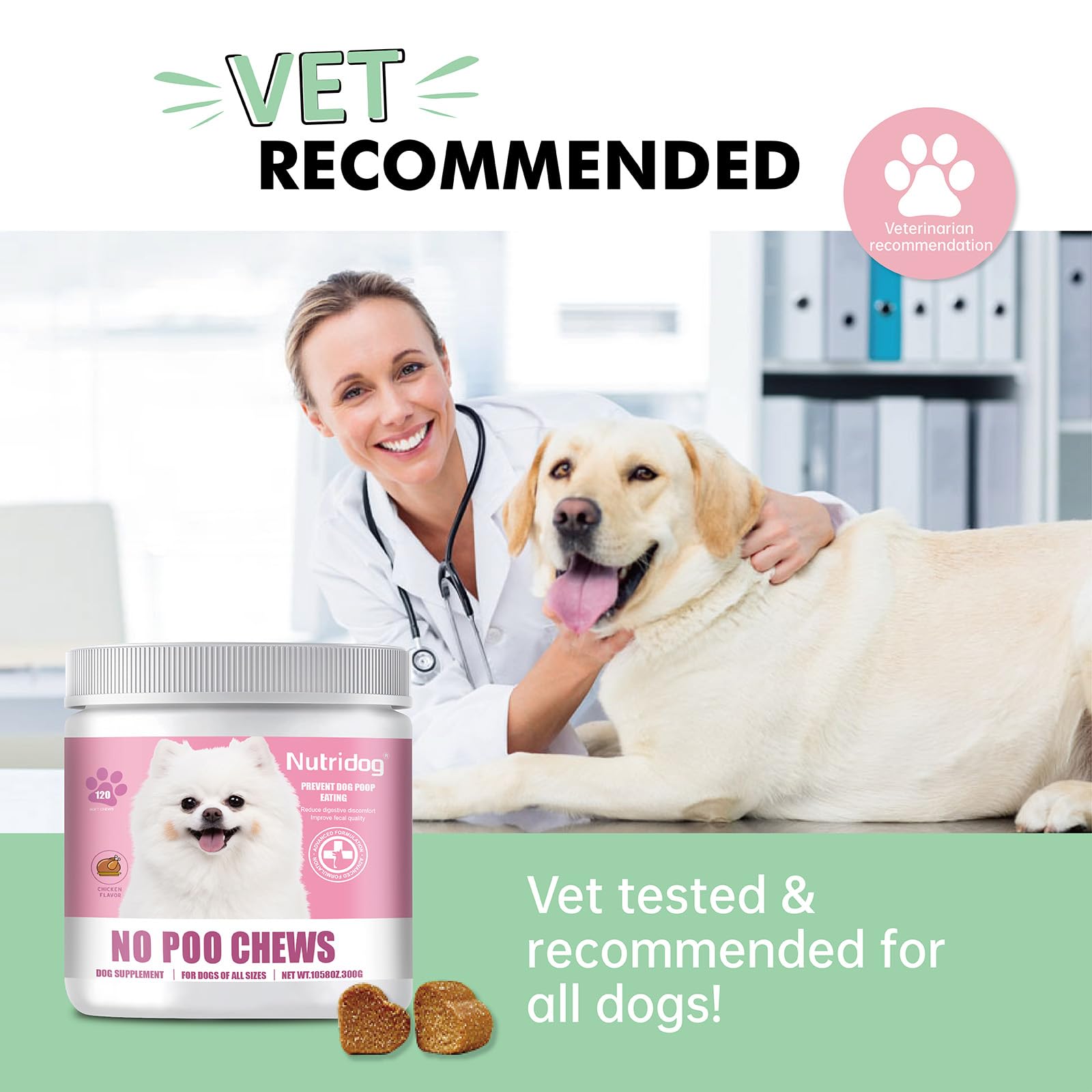 NutriDog No Poo Chews for Dogs - 120 Ct Chicken Flavor - Coprophagia & Stool Eating Deterrent with Probiotics, Digestive Enzymes & Breath Aid - Stop Dog Poop Eating - Gut Health (Chicken)