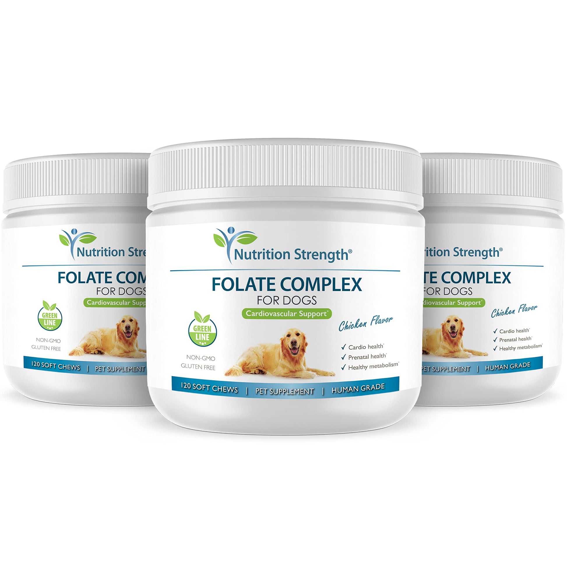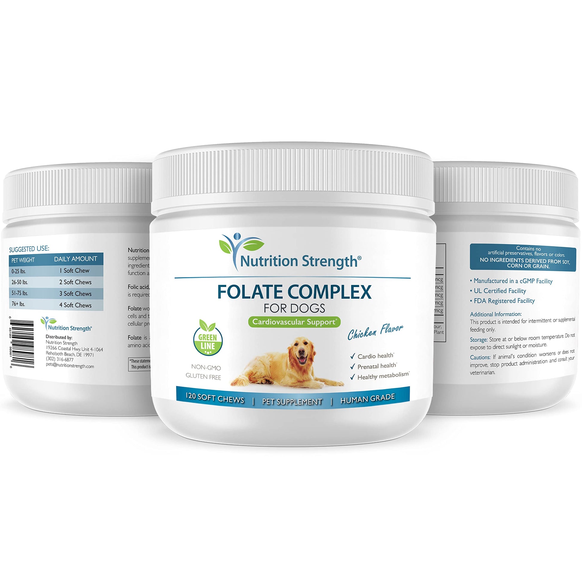 - Made in the USA: Nutrition Strength's folate for dogs to promote cardiovascular & prenatal health, support DNA synthesis and cell maintenance, folic acid for dogs with zinc, biotin, iron and vitamin B12, 120 soft chews is human grade; our premium folate supplement for dogs meets the strictest animal supplement manufacturing guidelines, to guarantee your pet's safety, and are made with carefully selected, high quality ingredients for optimal results