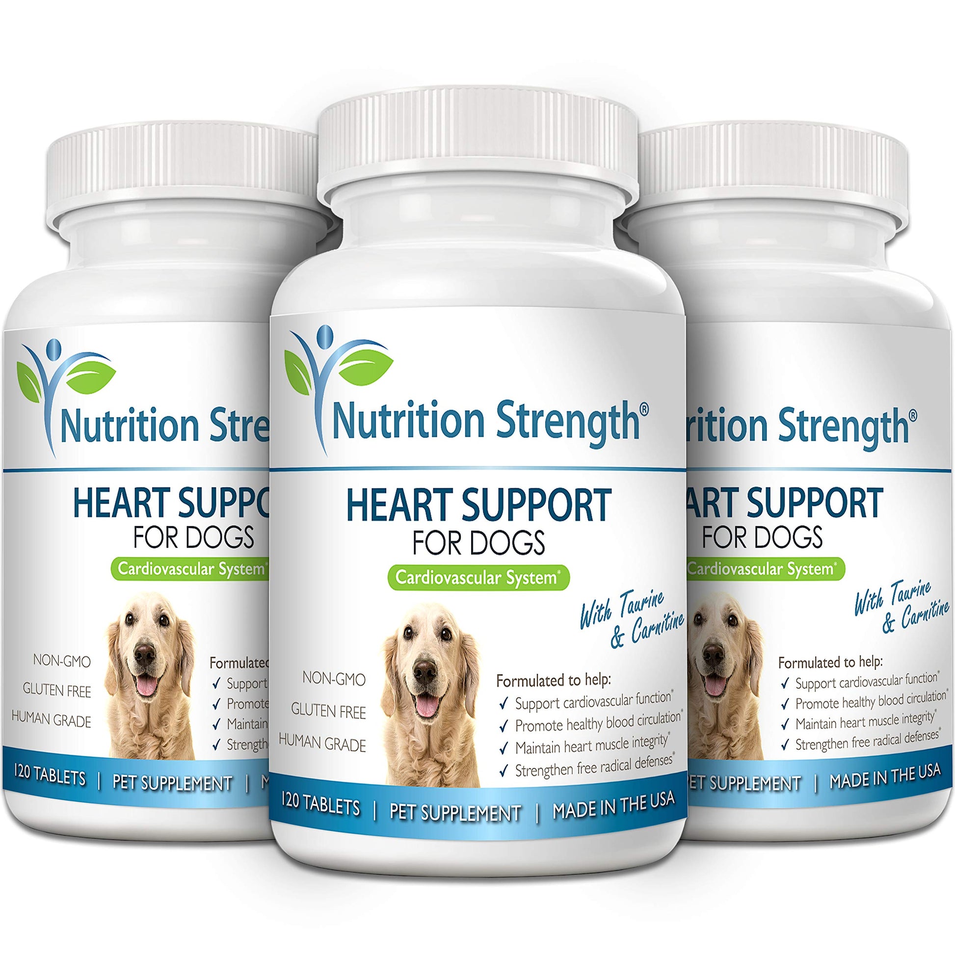 - Made in the USA: Nutrition Strength's heart support for dogs with taurine and carnitine, promote blood circulation, support cardiovascular function, heart muscle integrity and free radical defenses is human grade; our premium canine heart tablets meet the strictest animal supplement manufacturing guidelines, to guarantee your pet's safety, and are made with carefully selected, high quality ingredients for optimal results