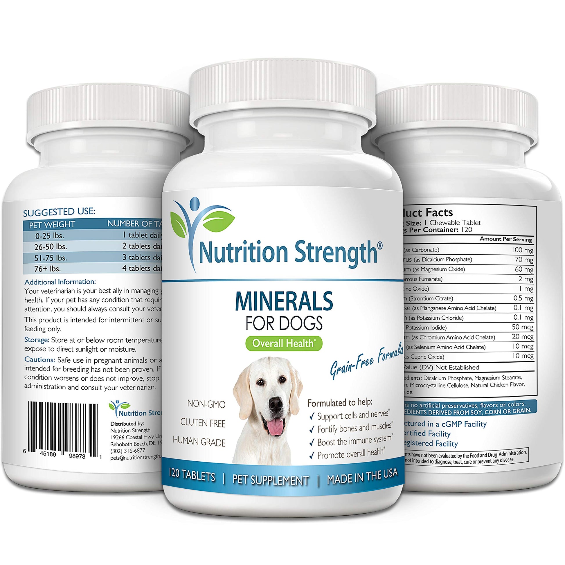 - Made in the USA: Nutrition Strength's minerals for dogs, support cells and nerves, fortify bones and muscles, promote overall health with calcium, phosphorus, magnesium, potassium, selenium, iron, zinc is human grade; our premium canine minerals tablets meet the strictest animal supplement manufacturing guidelines, to guarantee your pet's safety, and are made with carefully selected, high quality ingredients for optimal results