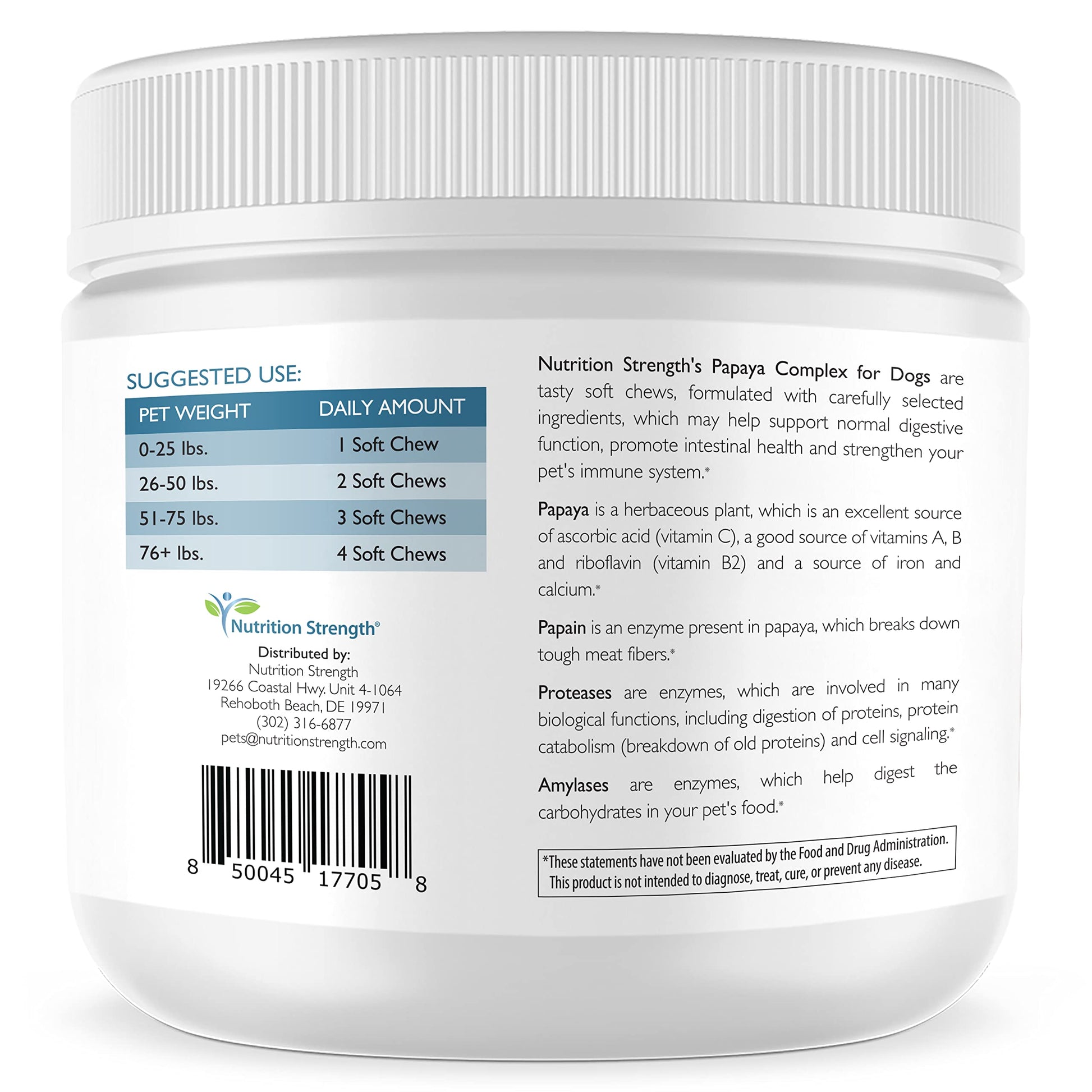 - Non-GMO and human grade: Nutrition Strength's papaya for dogs digestive enzyme complex to support normal intestinal function, boost immunity, with organic papaya fruit, plus papain, protease and amylase is human grade; our premium papaya good for dogs soft chews meet the strictest animal supplement manufacturing guidelines, to help ensure your pet's safety, and are made with carefully selected, high quality ingredients for optimal results