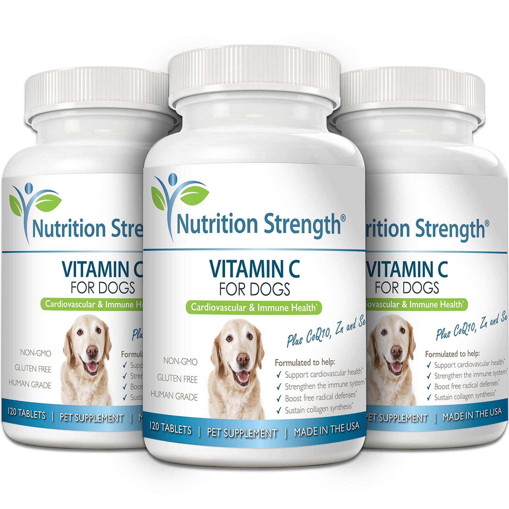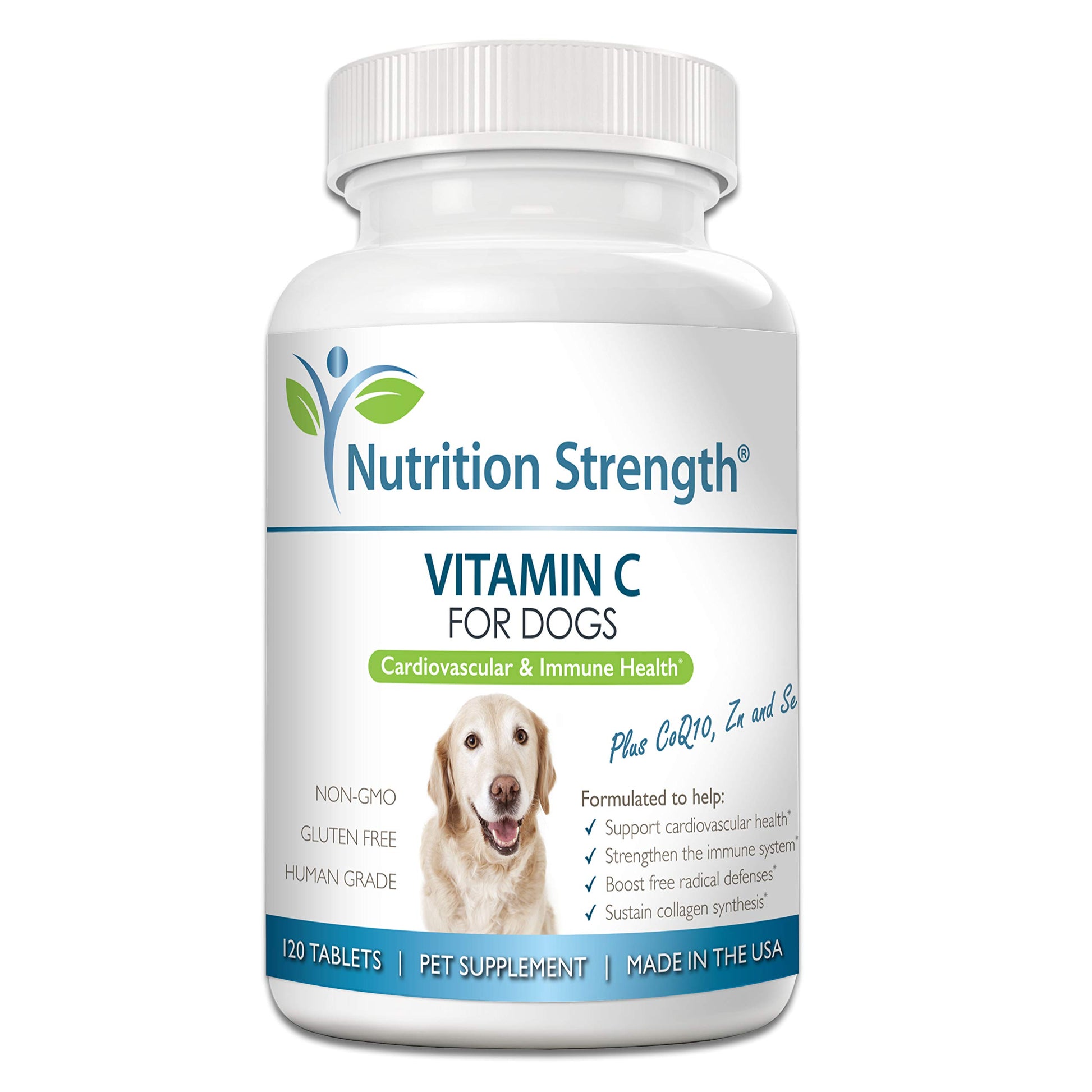 - Made in the USA: Nutrition Strength's vitamin C for dogs to support cardiovascular health, help strengthen the immune system, boost free radical defenses and sustain collagen synthesis is human grade; our premium vitamin C tablets for dogs meet the strictest animal supplement manufacturing guidelines, to guarantee your pet's safety, and are made with carefully selected, high quality ingredients for optimal results