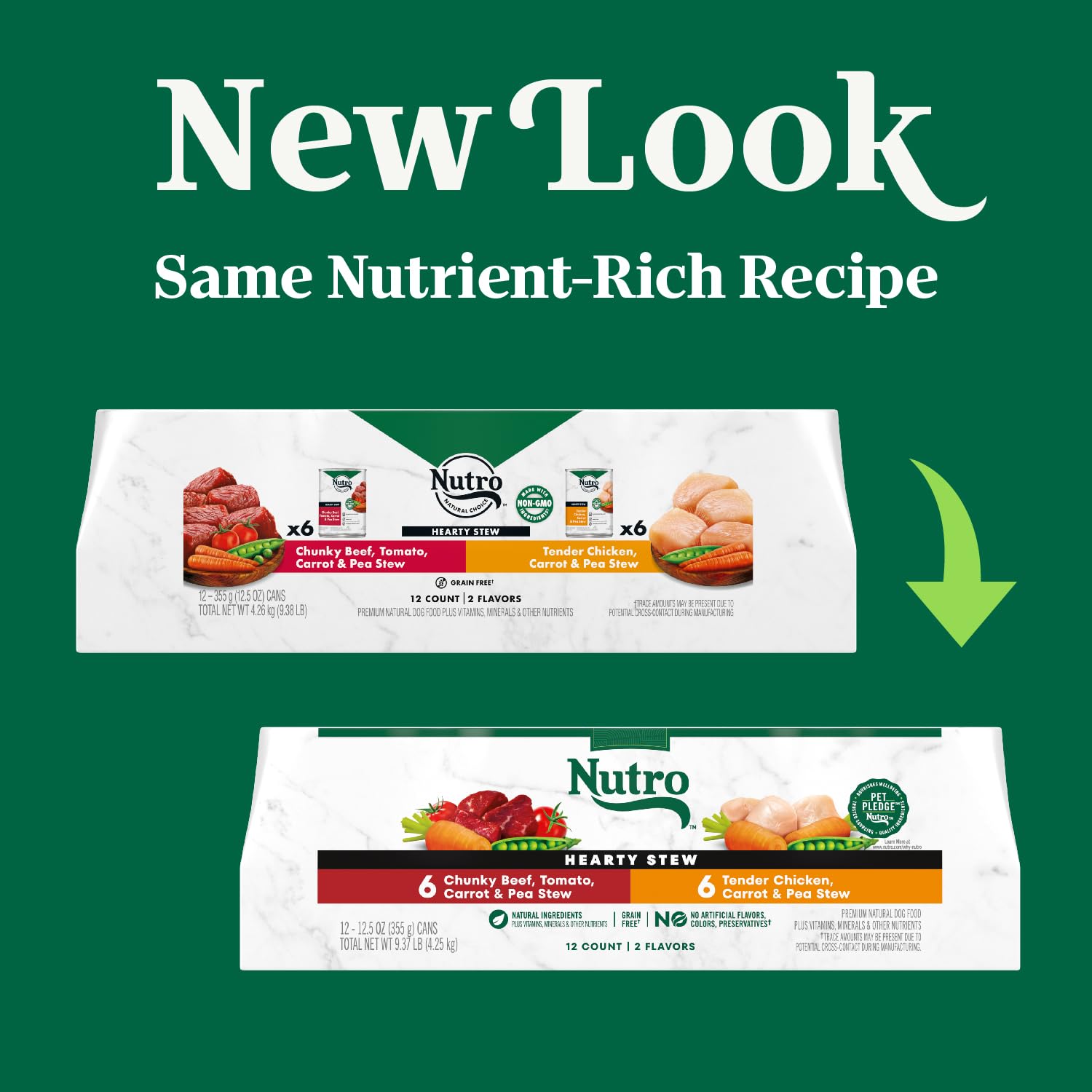 Nutro Hearty Stew Adult Natural Grain Free Wet Dog Food Cuts in Gravy Chicken Beef Variety Pack, 12.5 oz Cans (12 Count, Pack of 1)