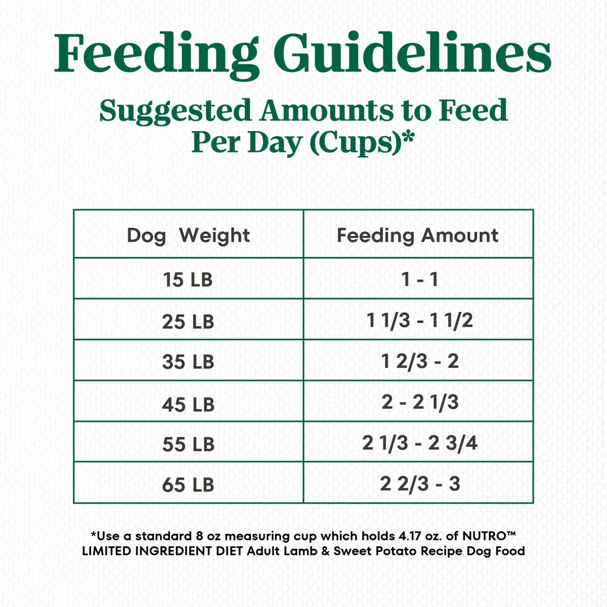 Details: The Nutro Limited Ingredient Diet is specially crafted with your dog’s sensitivities in mind Everything we include and leave out is done with intention Nutro Limited Ingredient Diet Adult Dry Dog Food, Lamb & Sweet Potato Recipe is always made with 10 key ingredients or less Crafted with no chicken, dairy protein, beef, chicken by-product meal, corn, wheat, or soy, although trace amounts may be present due to potential cross-contact during manufacturing, you can feel confident you’re giving your dog a quality recipe Nutro Limited Ingredient Diet Adult Dry Dog Food, Lamb & Sweet Potato Recipe is made with lamb as the #1 ingredient and is designed with Omega 3 & 6 Fatty Acids to support healthy skin and a soft, shiny coat This dry dog food recipe also contains natural fiber to promote healthy digestion and has essential antioxidants like Vitamin E and Selenium to support your dog’s immunity Nutro understands your pet’s health and vitality begins with what they eat; that’s why they serve quality recipes, tasty flavors, and wholesome ingredients