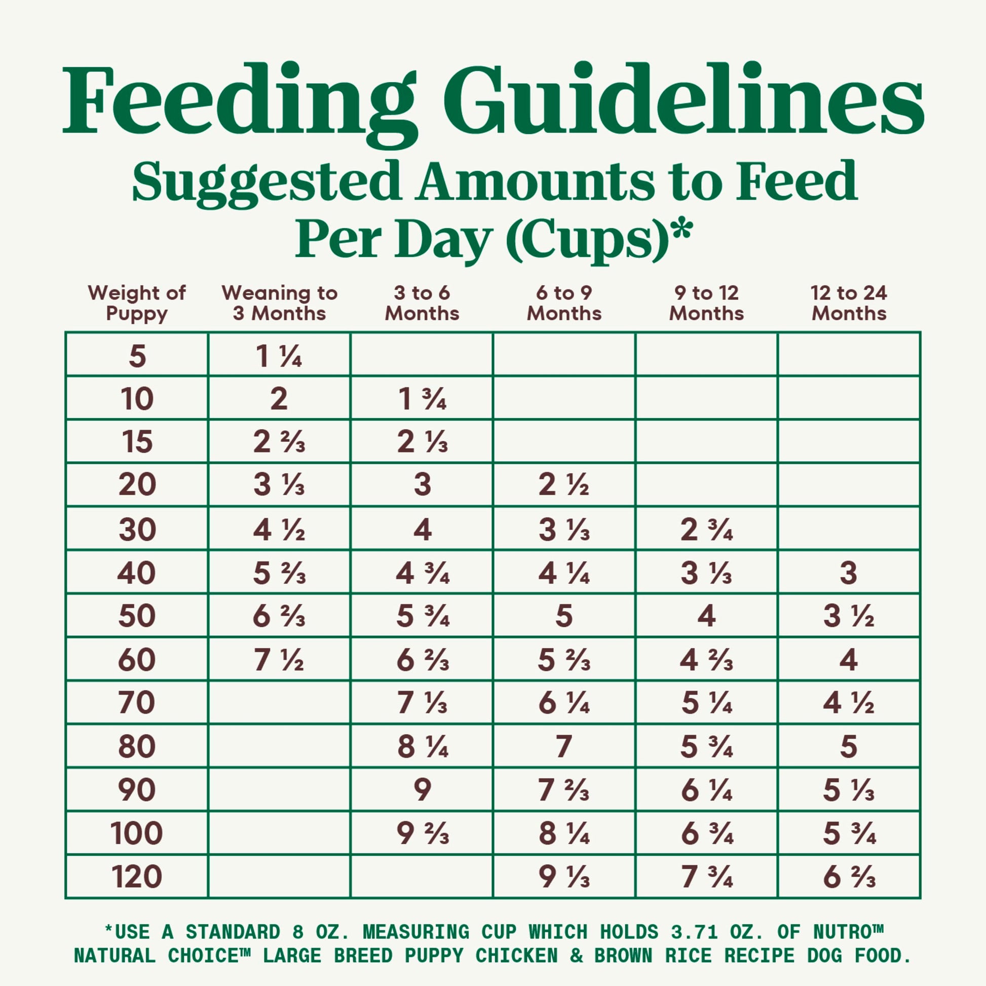Details: We understand that pet owners want the best for their dogs That’s why Nutro has a partnership with trusted farmers and suppliers to source high-quality ingredients, giving your dog quality nutrition both you and your pet will appreciate Made with chicken as the #1 ingredient, and crafted with vitamins, minerals, and other nutrients, Nutro Natural Choice Large Breed Puppy Dry Dog Food, Chicken and Brown Rice Recipe brings real, recognizable ingredients to every mealtime Crafted with DHA, an Omega-3 Fatty Acid, this dry dog food supports healthy brain and eye development in puppies There is no chicken by-product meal, corn, wheat, or soy protein and no artificial flavors, colors, or preservatives in this quality large breed Puppy dry dog food recipe, although trace amounts may be present due to potential cross-contact during manufacturing With ingredients that promote healthy skin and coat, digestion, and immunity, this large breed Puppy dry dog food recipe also supports your Puppy’s vitality Packed with delicious flavor, high quality ingredients, and supportive benefits, serve your furry loved one something they will love with Nutro Natural Choice Dry Dog Food Recipes