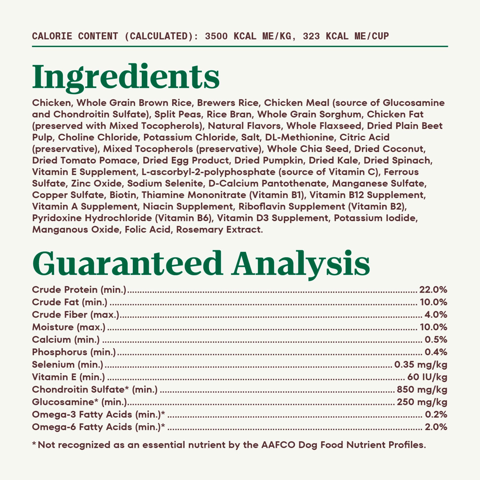 Details: We understand that pet owners want the best for their dogs That’s why Nutro has a partnership with trusted farmers and suppliers to source high-quality ingredients, giving your dog quality nutrition both you and your pet will appreciate Made with chicken as the #1 ingredient, and crafted with vitamins, minerals, and other nutrients, Nutro Natural Choice Senior Large Breed Dry Dog Food, Chicken & Brown Rice Recipe brings real, recognizable ingredients to every mealtime Crafted with natural sources of Glucosamine and Chondroitin, this dry dog food supports healthy joints in your senior dog There is no chicken by-product meal, corn, wheat, or soy protein and no artificial flavors, colors, or preservatives in this quality senior large breed dry dog food recipe, although trace amounts may be present due to potential cross-contact during manufacturing With ingredients that promote healthy skin and coat, digestion, and immunity, this senior large breed dry dog food recipe also supports your senior dog’s vitality Packed with delicious flavor, high quality ingredients, and supportive benefits, serve your furry loved one something they will love with Nutro Natural Choice Dry Dog Food Recipes