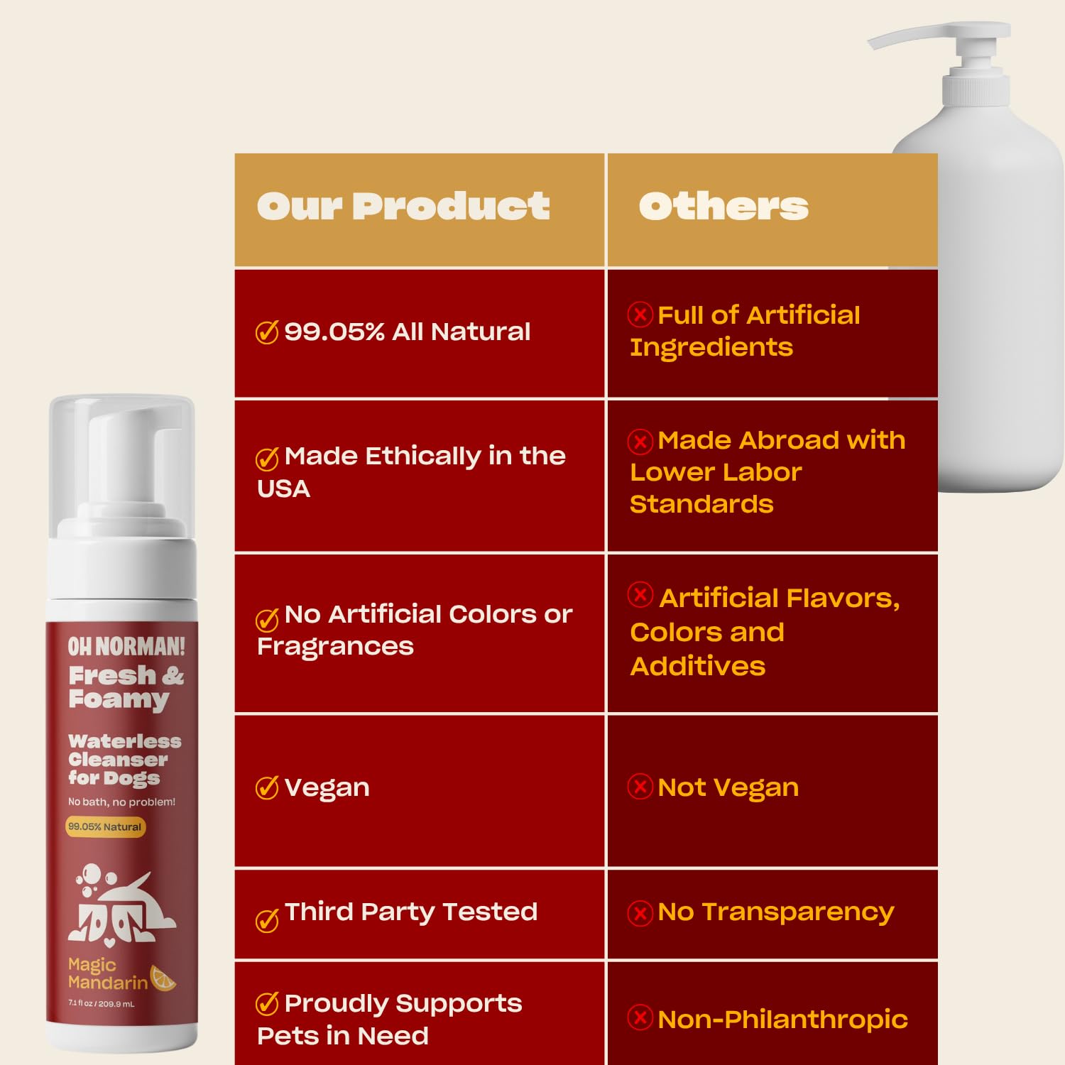 OH NORMAN! Hypoallergenic Magic Mandarin Scent Fresh and Foamy Dry Shampoo for Dogs by Kaley Cuoco - 7.1 Fl Oz Cruelty-Free Waterless Dog Shampoo No Rinse