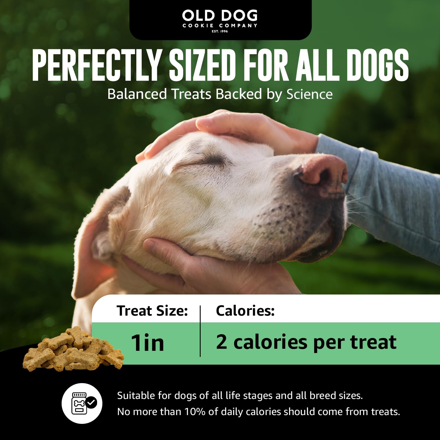- First Ever Diabetic-Friendly & All-Natural Formula for Healthy Snacking: Old Dog Cookie Company was the first to offer diabetic senior dog treats and dogs of all ages, made with natural ingredients to help regulate blood sugar and support overall wellness. Each bite-sized cookie is just 2 calories—perfect low calorie dog treats for weight management. These treats for dogs deliver the flavor dogs crave while offering truly healthy dog treats you can feel good about.