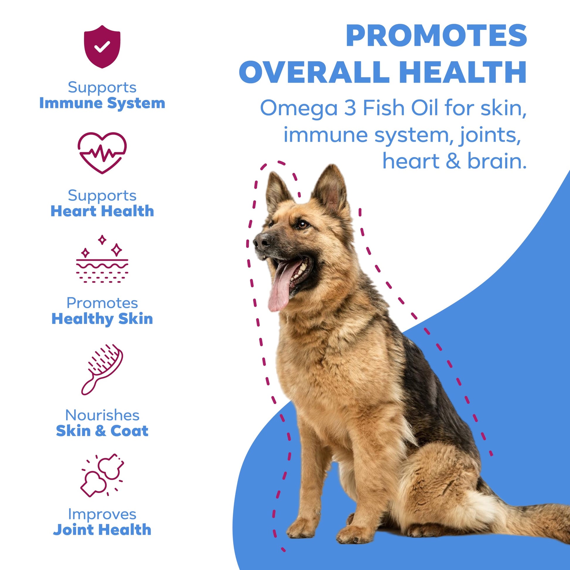 Omega 3 Fish Oil for Dogs - 120 SoftGels - Skin & Coat Supplement for Dogs, Supports Healthy Skin, Coat, Joints, Heart & Immune System, Premium Fish Oil Supplement for Dogs - Made in USA
