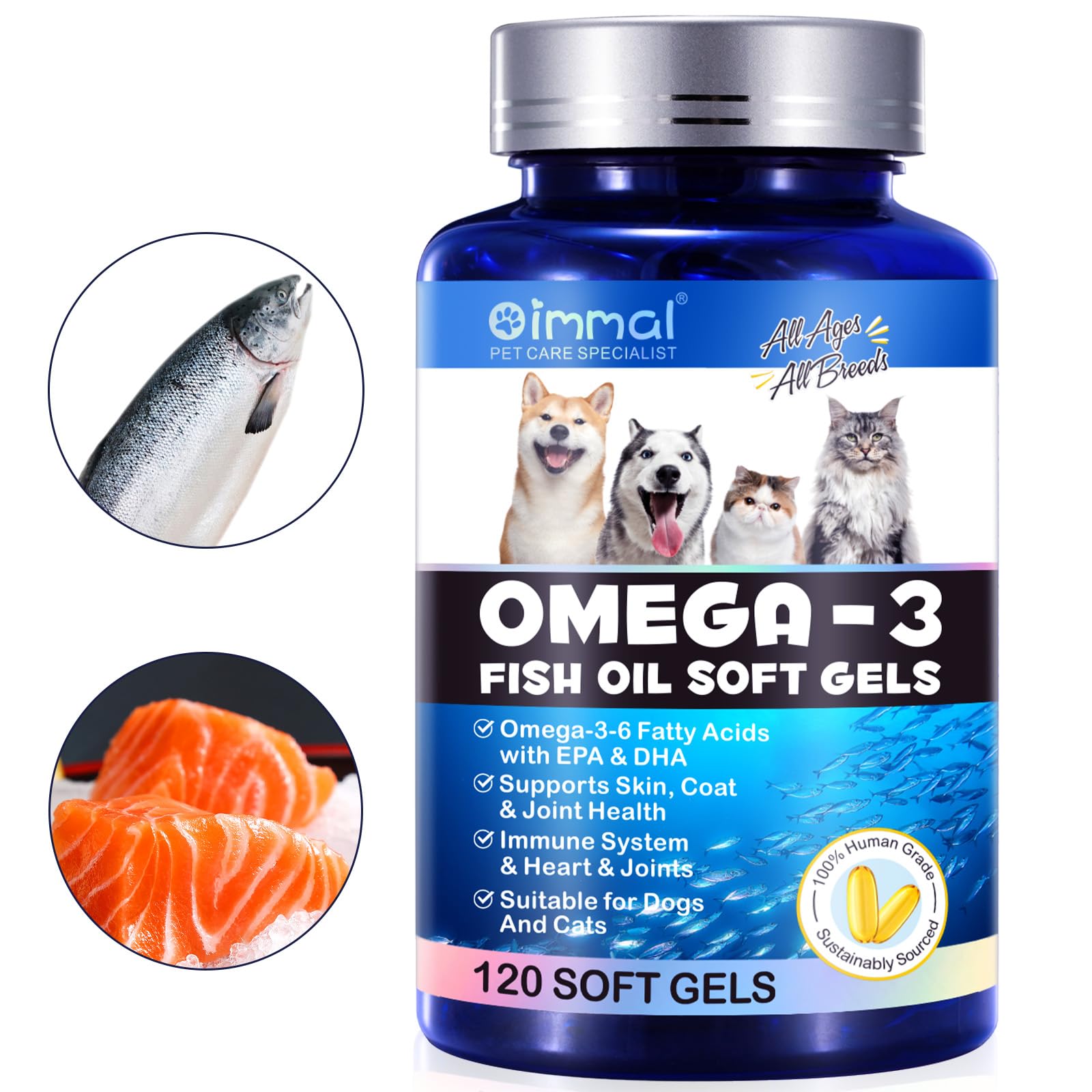 Omega-3 Pet, Salmon Oil Soft Gels for Dogs and Cats (120pcs)- Skin and Coat Health Supplement with EPA & DHA Fatty Acids, Omega-3 Fish Oil Pills Treats for Pet Shedding, Skin Allergy, Itch Relief