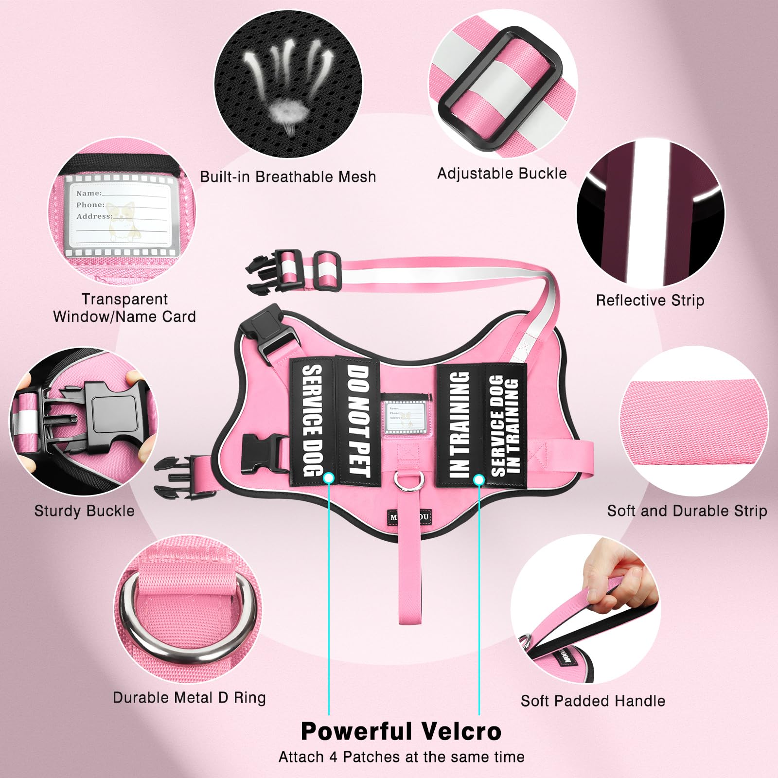 • Easy Adjustable Dog Harness: Top handle for traffic control, 4 quick release buckles for easy put on and off while providing extra security; With one top handle for your dog’s lead & control and one V-ring on the front for dog leash attachment