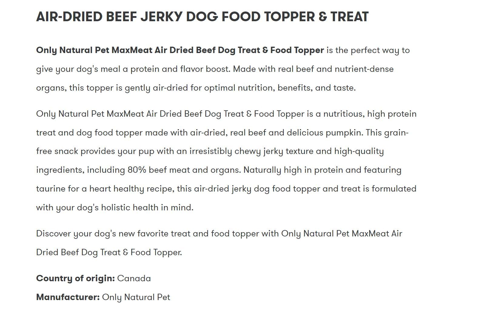 Only Natural Pet MaxMeat Holistic Air Dried Dry Dog Food Meal Topper - All Natural, High Protein, Grain Free and Limited Ingredient - Made with Real Meat - Beef with Pumpkin & Parsley 4 oz