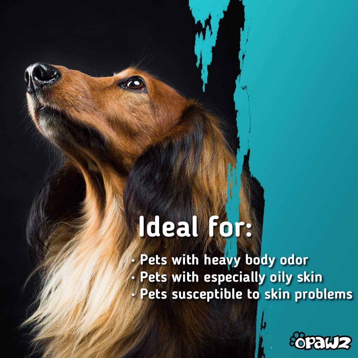 REPAIRING AND CONDITIONING - OPAWZ activated charcoal dog shampoo delivers deep hydration and soothing relief for dry, itchy skin and hot spots. Prevents hair damage caused by pollution, repairs and protects coat and skin. Eliminates odors effectively. Helps to detangle hair, and conditioning pet's coat and skin.