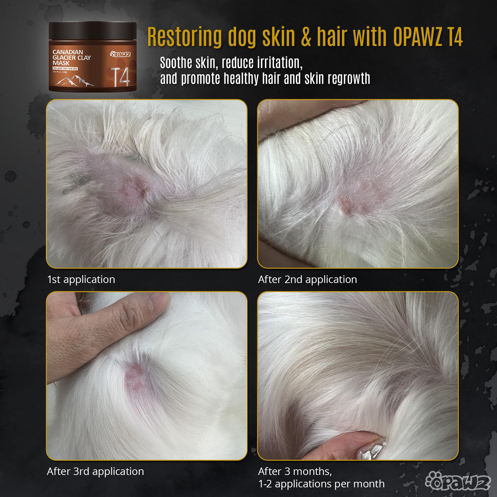 Treat your pets to professional-level care with the T4 Canadian Glacier Clay Mask, our dog itching skin relief product is specially formulated for both dogs and cats. This clay mask tackles common skin and coat issues, providing a soothing and restorative experience. Canadian Glacier Clay cleanses deeply, absorbs excess oil, and balances skin oil production to reduce unpleasant odors.