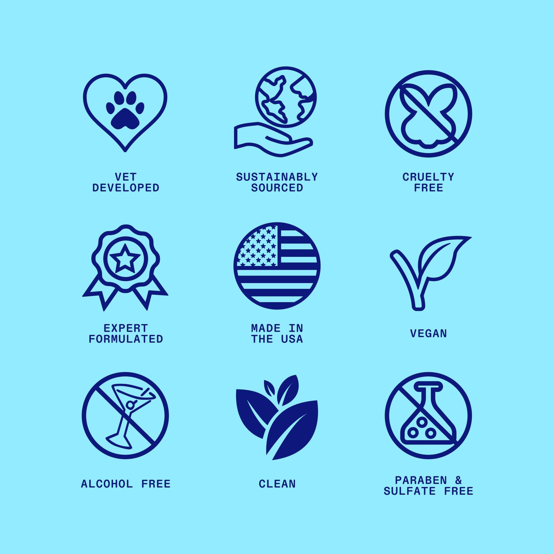 Clean & sustainably sourced: Made with the safest ingredients. Non-toxic, vegan, cruelty-free, pH balanced for dogs, no harsh chemicals, alcohol-free, paraben & sulfate-free, sustainably-sourced and made with love in the USA.